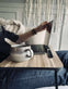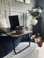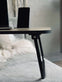 Bordet med hållare kombinerar funktionalitet och stil med sin bordsskiva i laminat och ben i metall. Laminatytan är lätt att rengöra och motståndskraftig mot repor, vilket gör det praktiskt för dagligt bruk. Metallbenen ger stabilitet och hållbarhet, vilket bidrar till en långvarig investering i ditt hem. Denna kombination säkerställer ett bord som enkelt passar in i olika inredningsstilar.