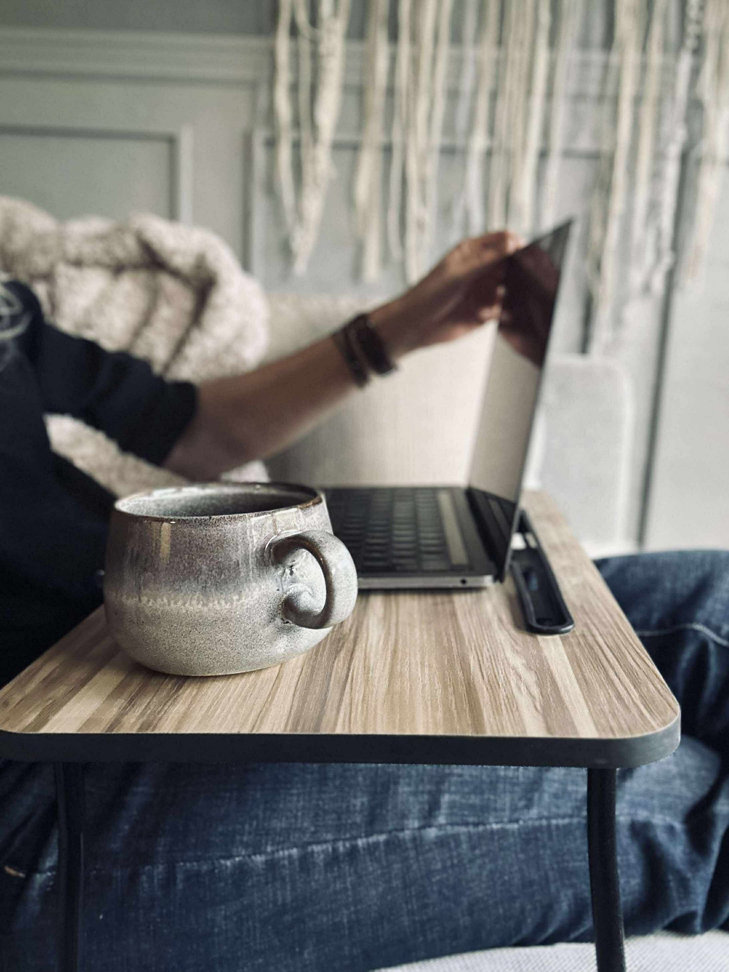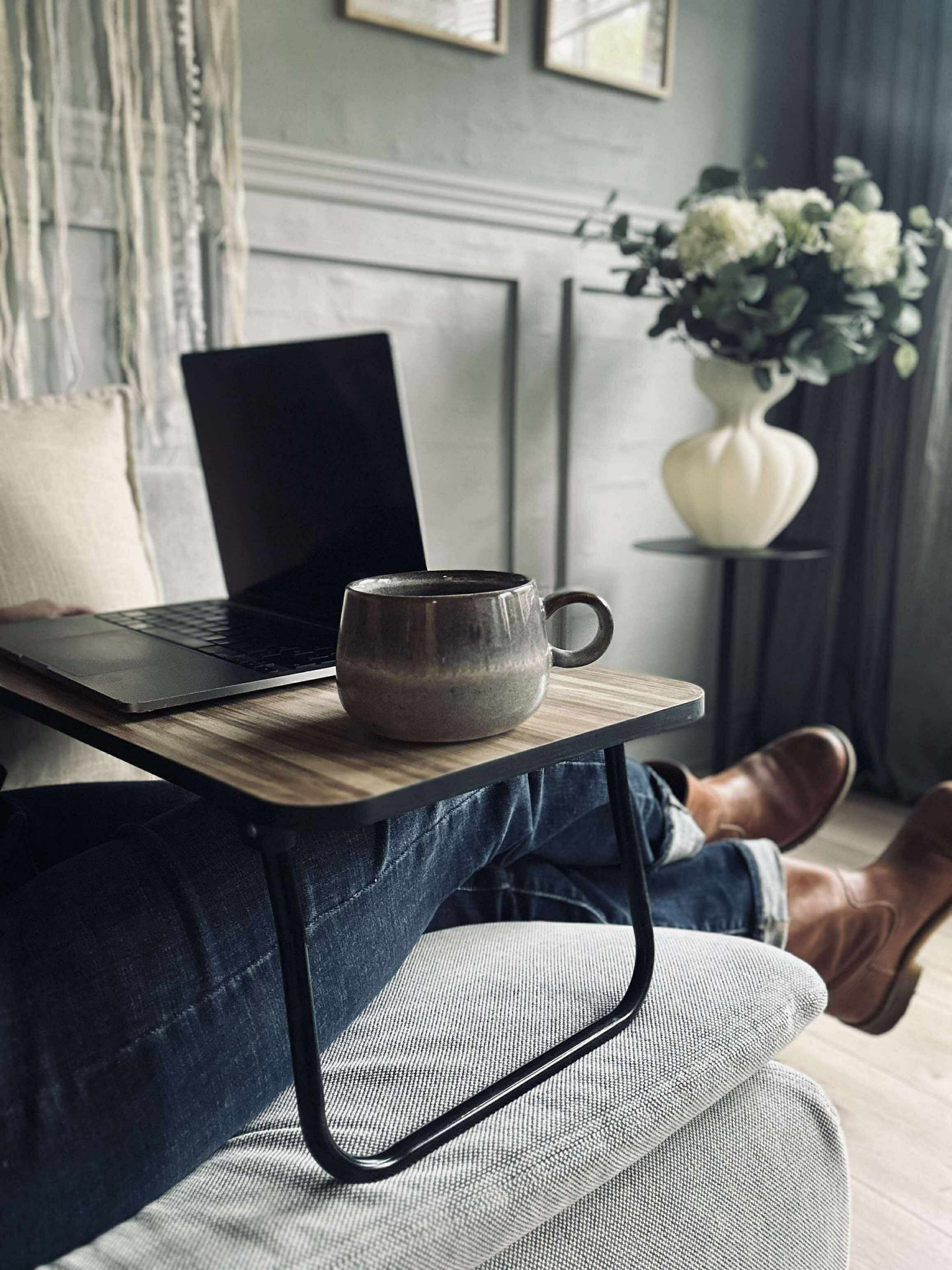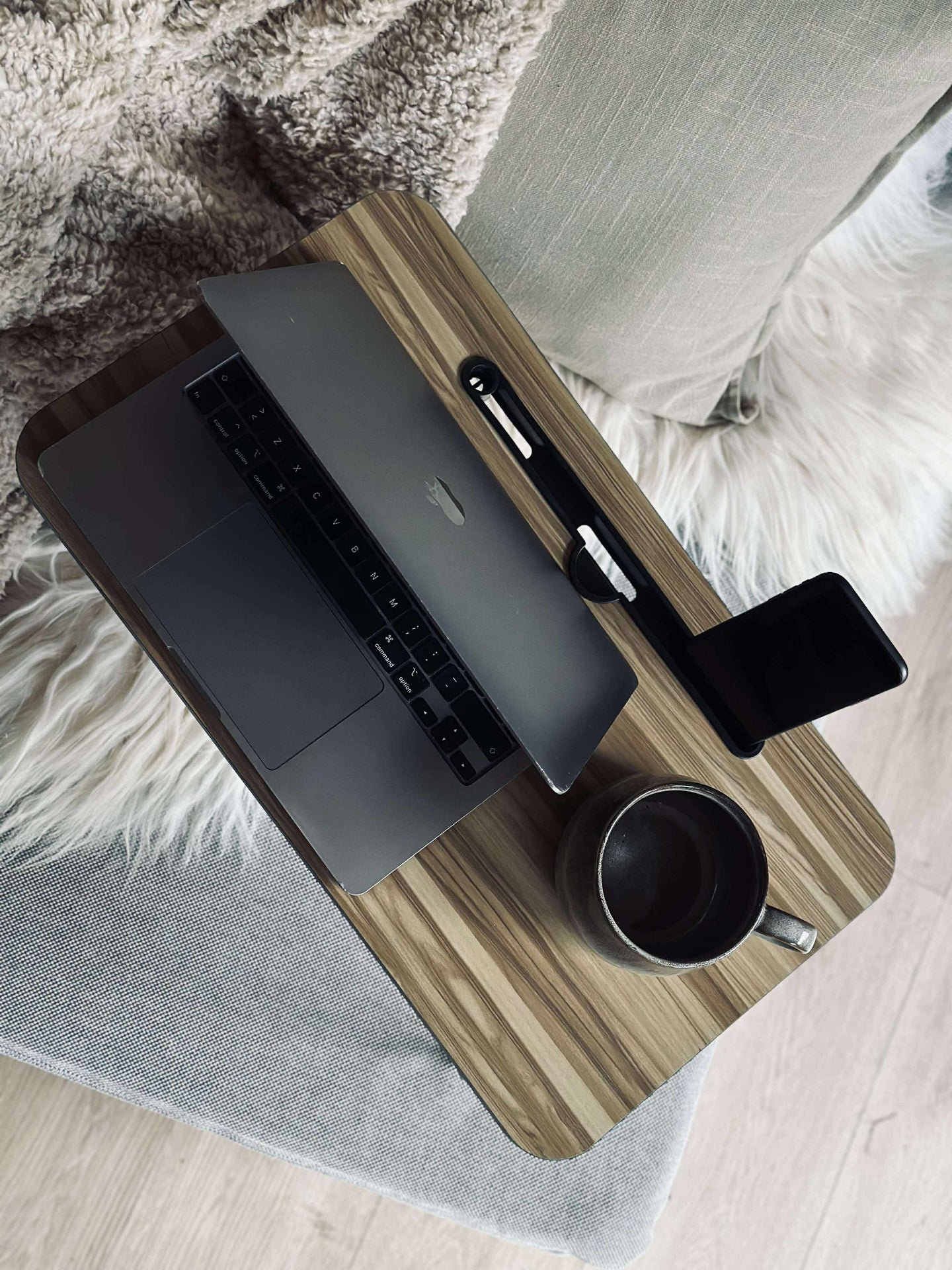 Har du någonsin önskat en plats för både din telefon och dator när du arbetar eller kopplar av hemma? Detta fällbara bord erbjuder en praktisk lösning för att hålla dina enheter organiserade och inom räckhåll, utan att kompromissa med utrymmet.