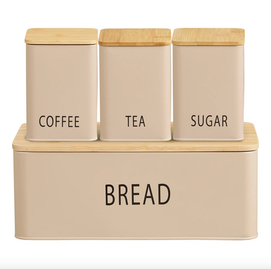 - Brödlådan och burkarna är tillverkade av metall