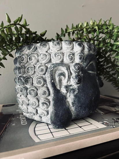 För dig som söker harmoni och balans i ditt hem. Buddha kruka i grå cement är skulpterad med en lugnande Buddha-figur, som ger ett meditativt och inbjudande tillägg till din inredning. Dess robusta design kompletterar perfekt dina favoritväxter.