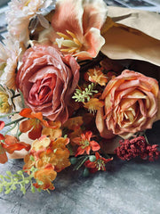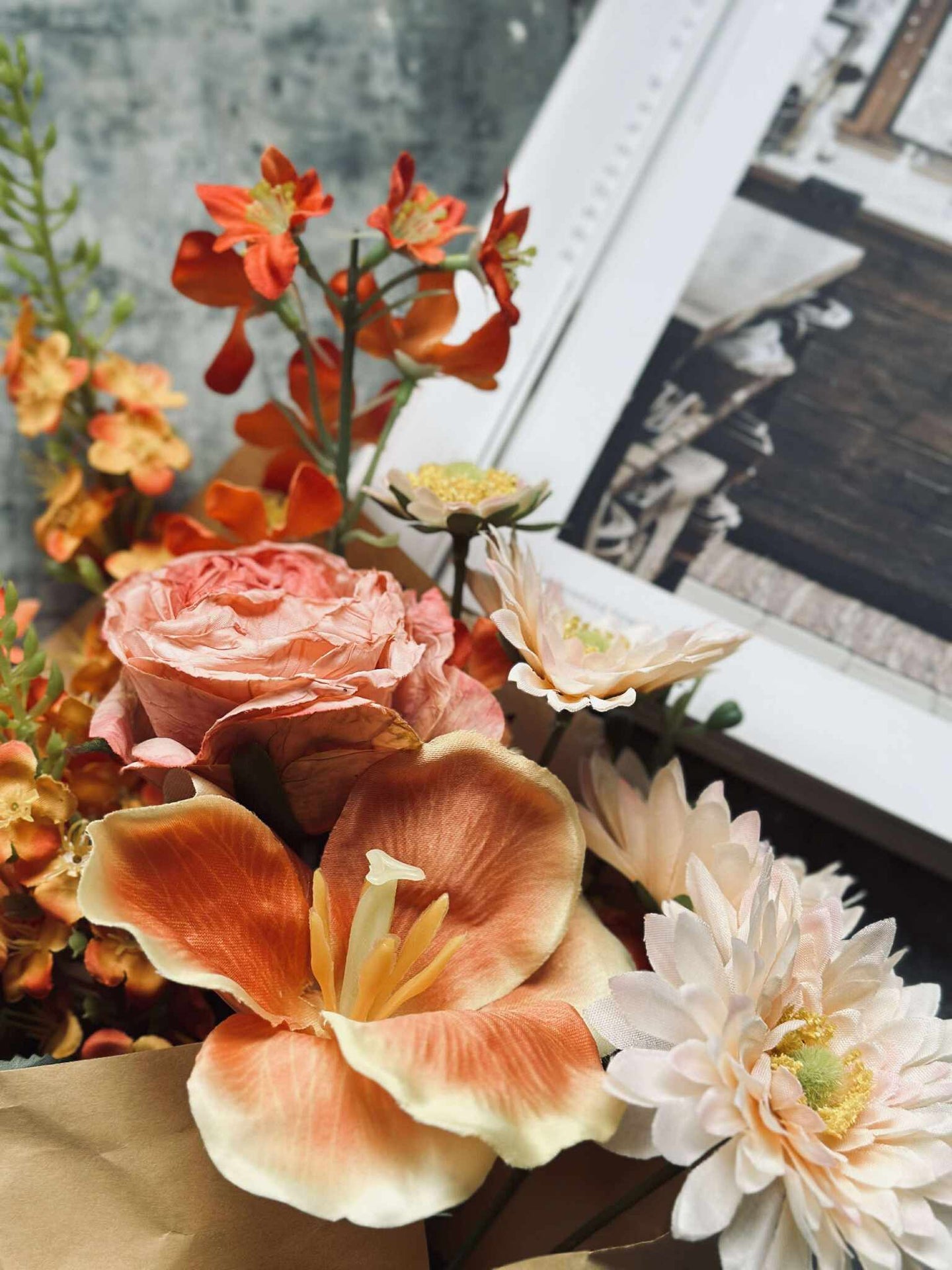 Materialen i buketten, bestående av plast och textil, erbjuder en hållbar och underhållsfri lösning för att förhöja ditt hem. Dessa material ger blommorna ett realistiskt utseende samtidigt som de är motståndskraftiga mot blekning och skador. Perfekta för utrymmen med begränsat naturligt ljus, behåller dessa konstgjorda blommor sin charm året runt utan behov av vattning eller speciell skötsel.