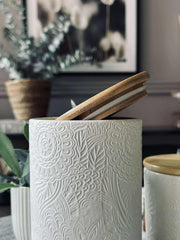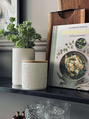 Tänk dig att ha en vacker och praktisk lösning för förvaring i ditt kök. Denna keramikkruka kombinerar funktionalitet och naturliga material, vilket hjälper till att hålla dina torrvaror fräscha och organiserade. En stilren lösning för den medvetna köksentusiasten.