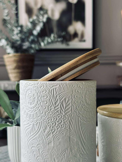 Skapa ordning och harmoni i ditt kök med denna vackra keramikkruka. Ge dina torrvaror ett stilrent hem samtidigt som du håller dem fräscha och lättåtkomliga. Upplev fördelarna med en organiserad och estetiskt tilltalande köksmiljö med denna praktiska lösning.