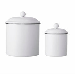 Undvik röran i köket med dessa snygga förvaringsburkar i vit metall. De skapar ordning och reda bland dina livsmedel och ger samtidigt ditt kök en stilfull och sammanhållen känsla. En praktisk och estetisk lösning för ditt hem.