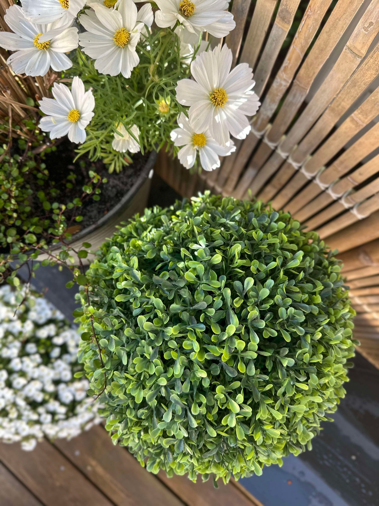 Ge ditt hem en fräsch och levande känsla utan krångel. Låt Buxbomkulan på 30 cm bli din underhållsfria lösning för vacker dekoration. Skapa en avslappnad och vacker atmosfär utan att behöva tänka på att vattna eller sköta om växterna. Uppgradera ditt hem idag!