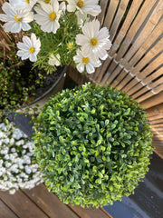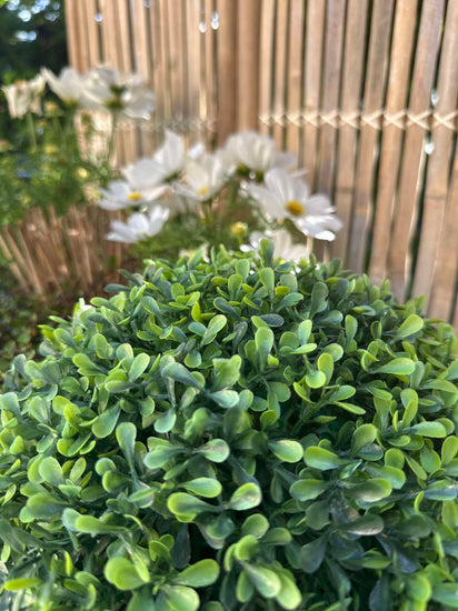 Klotet av plast med konstgjord buksbom erbjuder en naturliknande grönska utan behov av underhåll. De täta bladen ger en fyllig och livlig känsla som kan förhöja atmosfären i vilket rum som helst. Denna dekorativa detalj passar både inomhus och utomhus och håller sig grön året runt, vilket gör det enkelt att skapa en trivsam miljö.