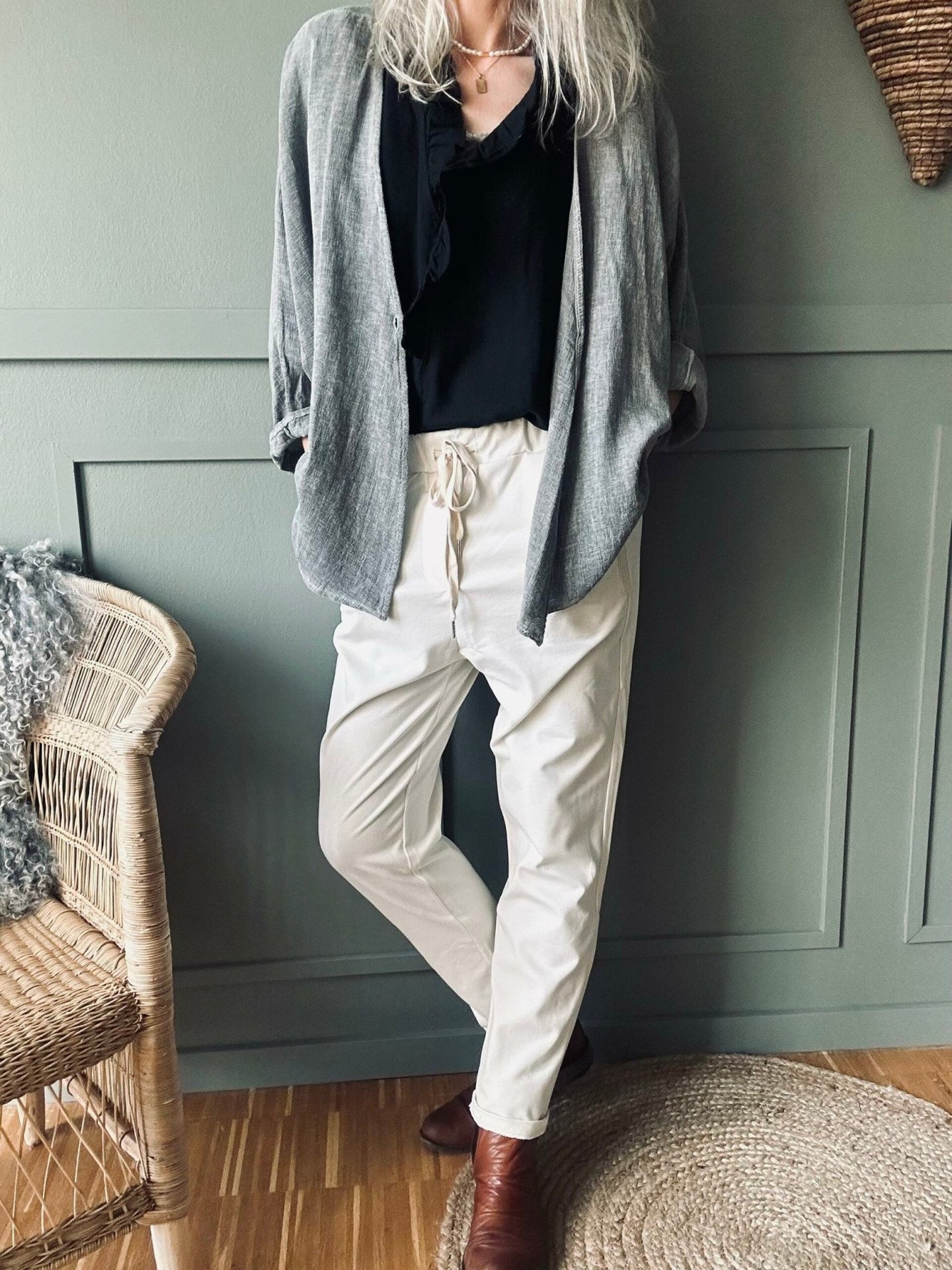 Uppdatera din garderob med Byxor Luna Ljus beige och upplev en ny nivå av komfort och stil i din vardag. Ge dig själv möjligheten att känna dig bekväm och sofistikerad samtidigt som du tar dig igenom dagen. Var redo att omfamna en ny nivå av självförtroende!