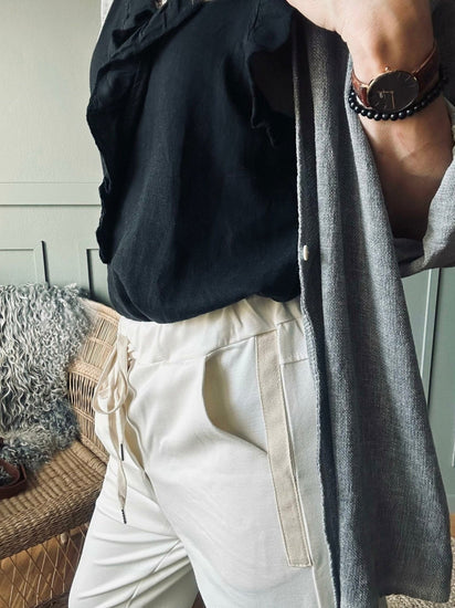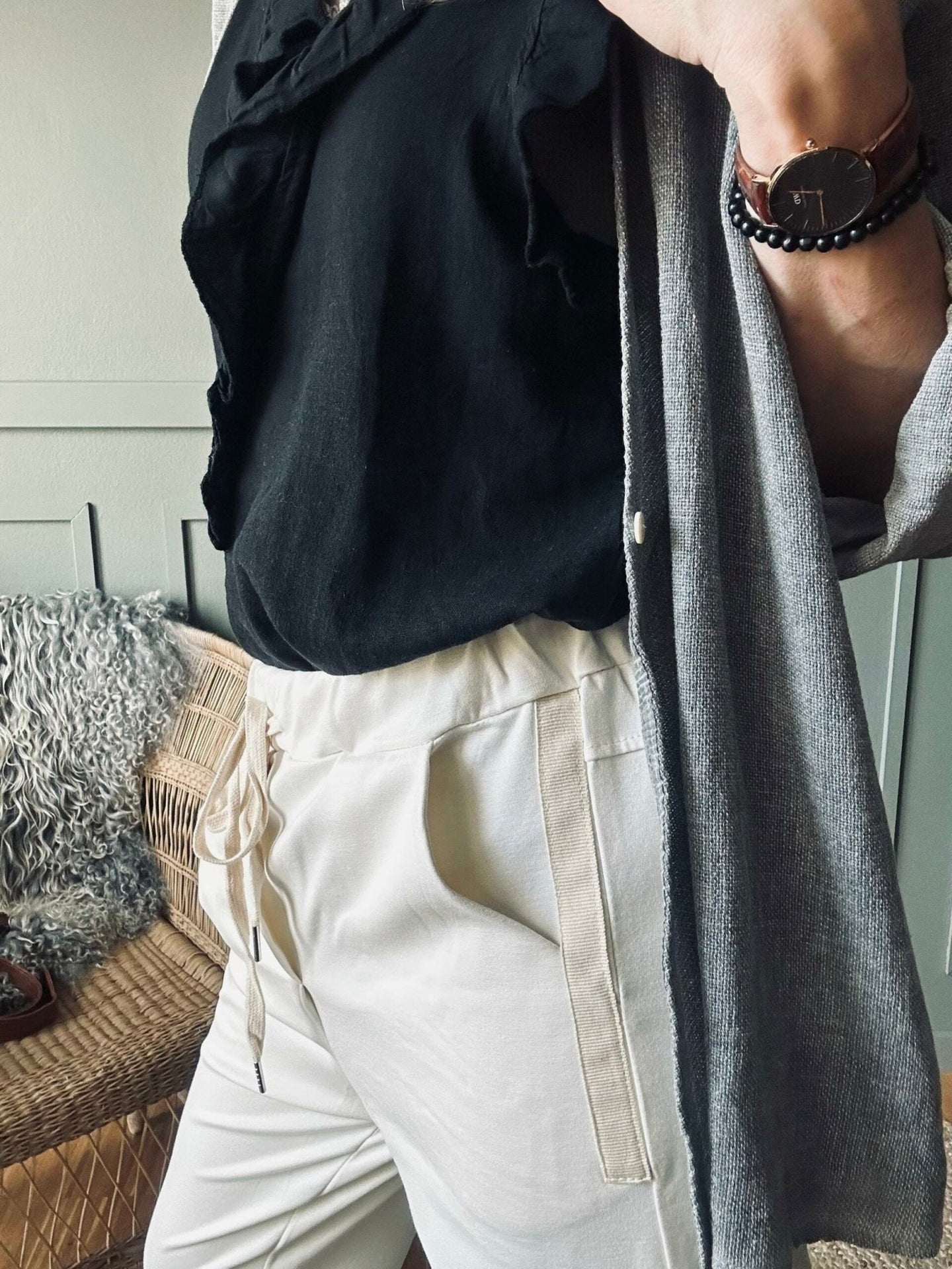 Byxor Luna Ljus beige är bekväma och stiliga byxor med en fräsch och sofistikerad look. Dessa byxor ger dig bekvämlighet och flexibilitet i din dagliga rutin, oavsett om det är på jobbet, hemma eller ute på stan.