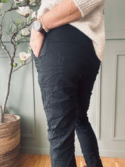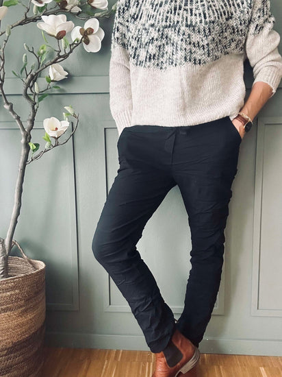 Trött på obekväma byxor som begränsar din rörelsefrihet? Bukser Rosella Black erbjuder en lösning med sin bekväma passform och flexibla material, vilket gör dem idealiska för både vardag och arbete. Upplev komfort och stil utan kompromisser.