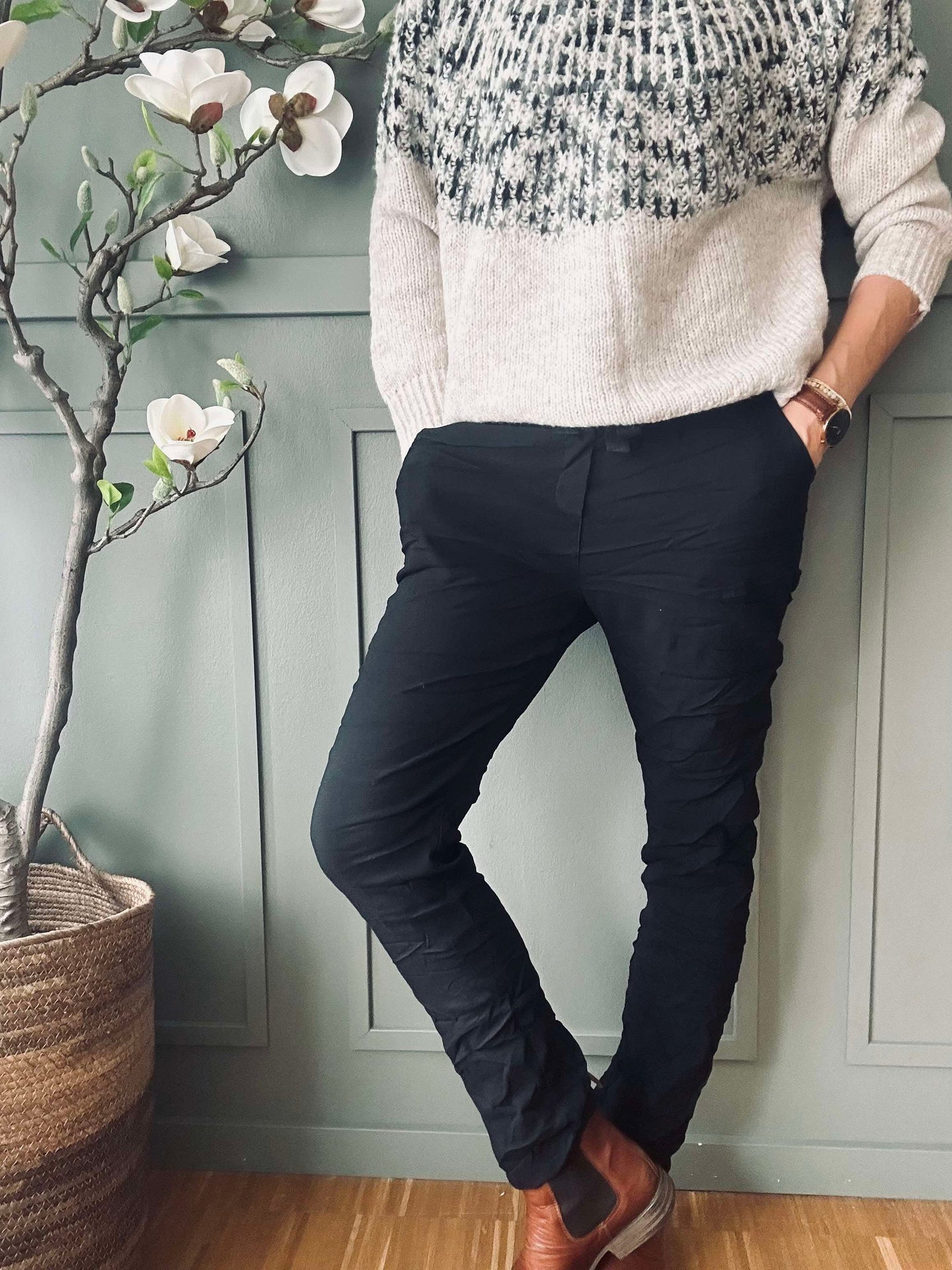 Uppgradera din garderob med Bukser Rosella Black och säg adjö till obekväma byxor för gott. Upplev friheten att röra dig utan begränsningar och njut av stil och komfort varje dag. Ge dig själv den bästa presenten – bekväma och flexibla byxor!