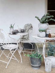 Vårt caféset är tillverkat av lätt järn, vilket ger flera fördelar. För det första är det lätt att flytta runt, vilket gör det möjligt att snabbt och enkelt ändra layouten i din trädgård. För det andra är järnet robust och tåligt, vilket säkerställer att setet håller under lång tid. Trots sin lätta vikt kan du lita på att dessa möbler står stadigt.