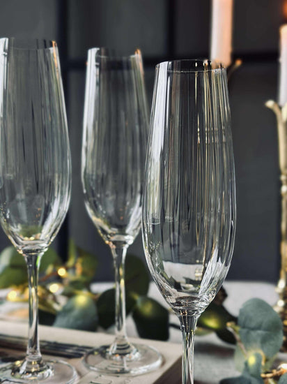 Det klara kristallglaset i våra champagneglas ger en exceptionell klarhet och ljusreflektion, vilket förhöjer upplevelsen av både dryckens utseende och smak. Materialets transparens låter bubblorna dansa livfullt och skapar en visuell njutning vid varje skål. Kristallglasets hållbarhet säkerställer dessutom långvarig användning, vilket gör det till ett pålitligt val för både vardag och speciella tillfällen.