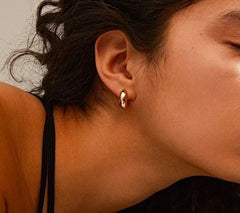 Chunky hoops-örhängen har en minimalistisk design som ger dem en slående men samtidigt diskret utseende. Dessa örhängen är utformade med en tjock, rundad kant som tillför ett unikt och modernt inslag till varje outfit. Deras enkelhet gör dem till ett mångsidigt smycke som kan bäras både till vardagskläder och festkläder.