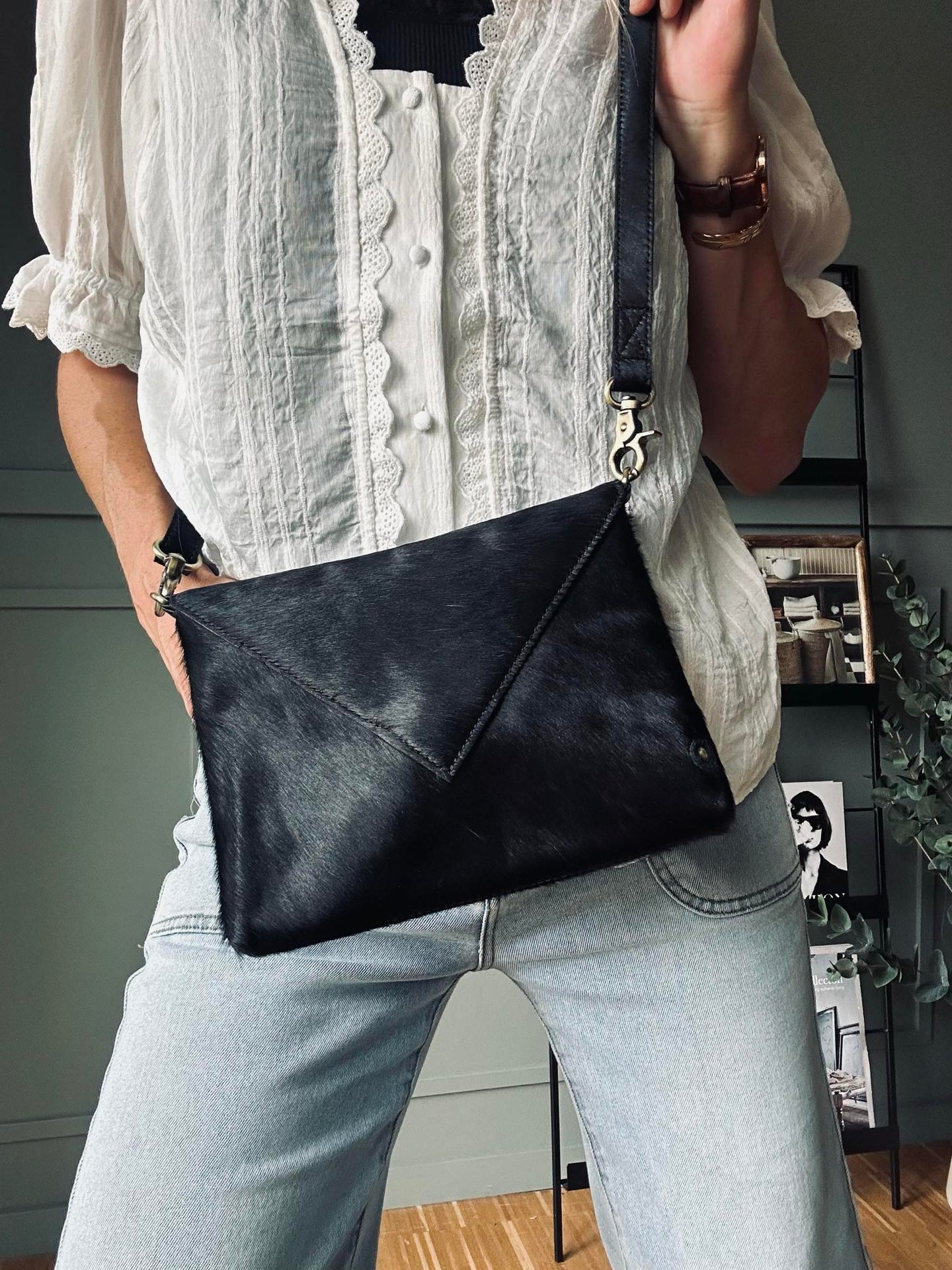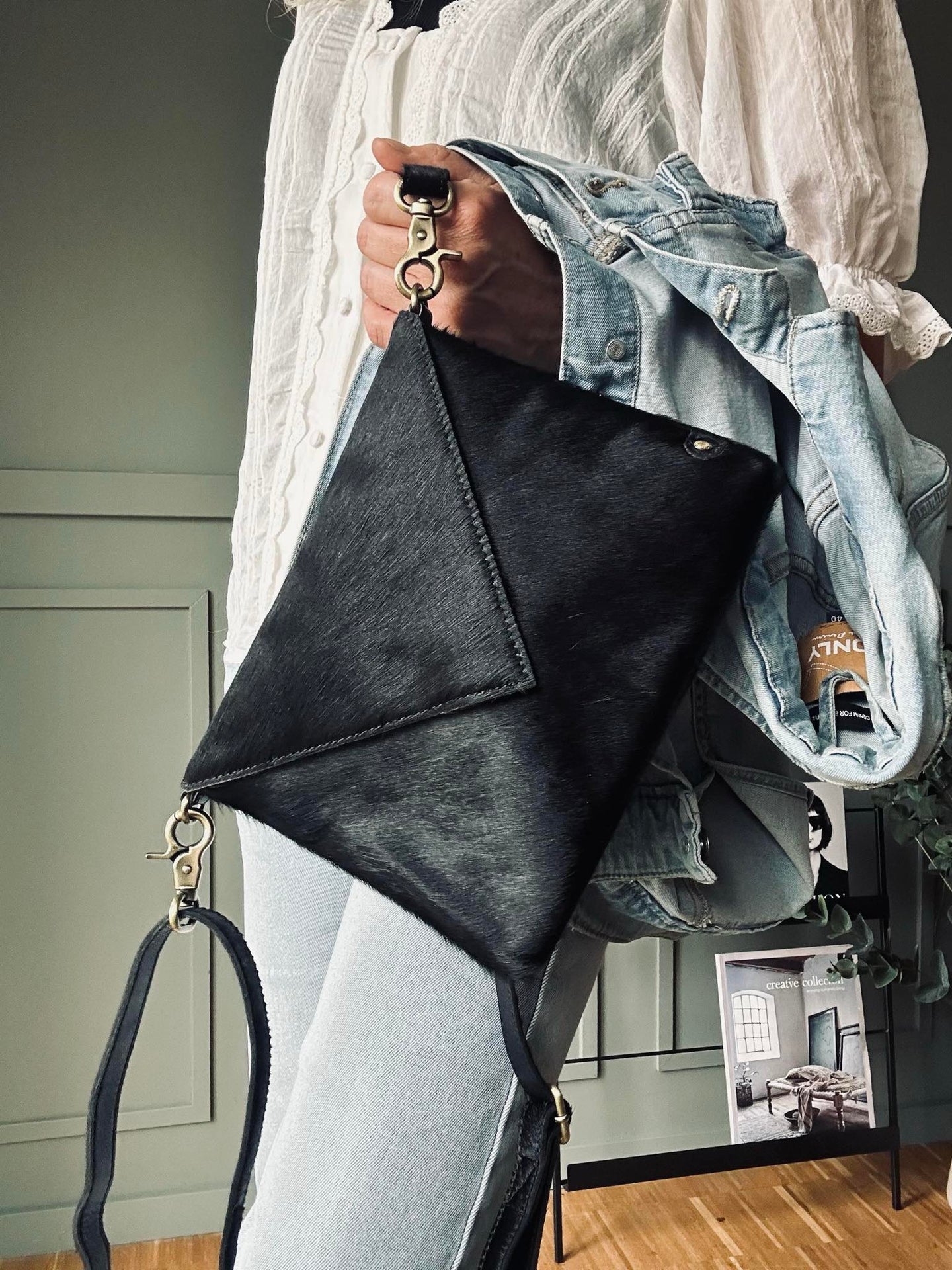 - Handväskan är tillverkad av 100 % kalvskinn med hår på