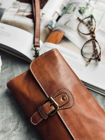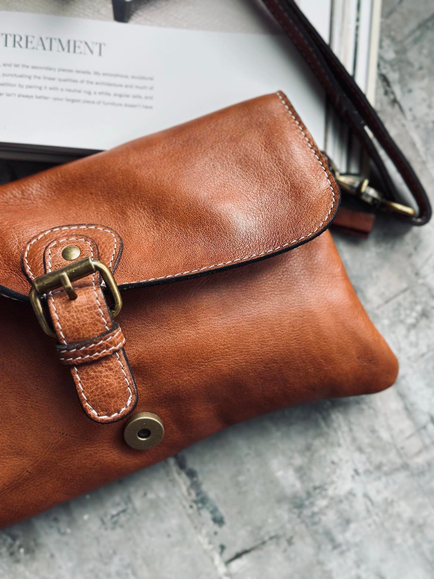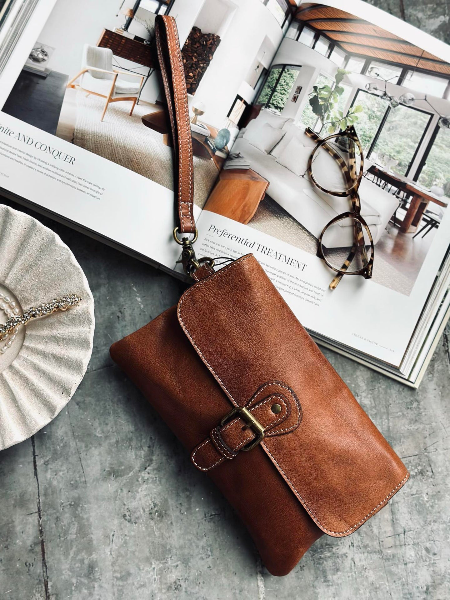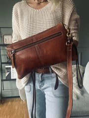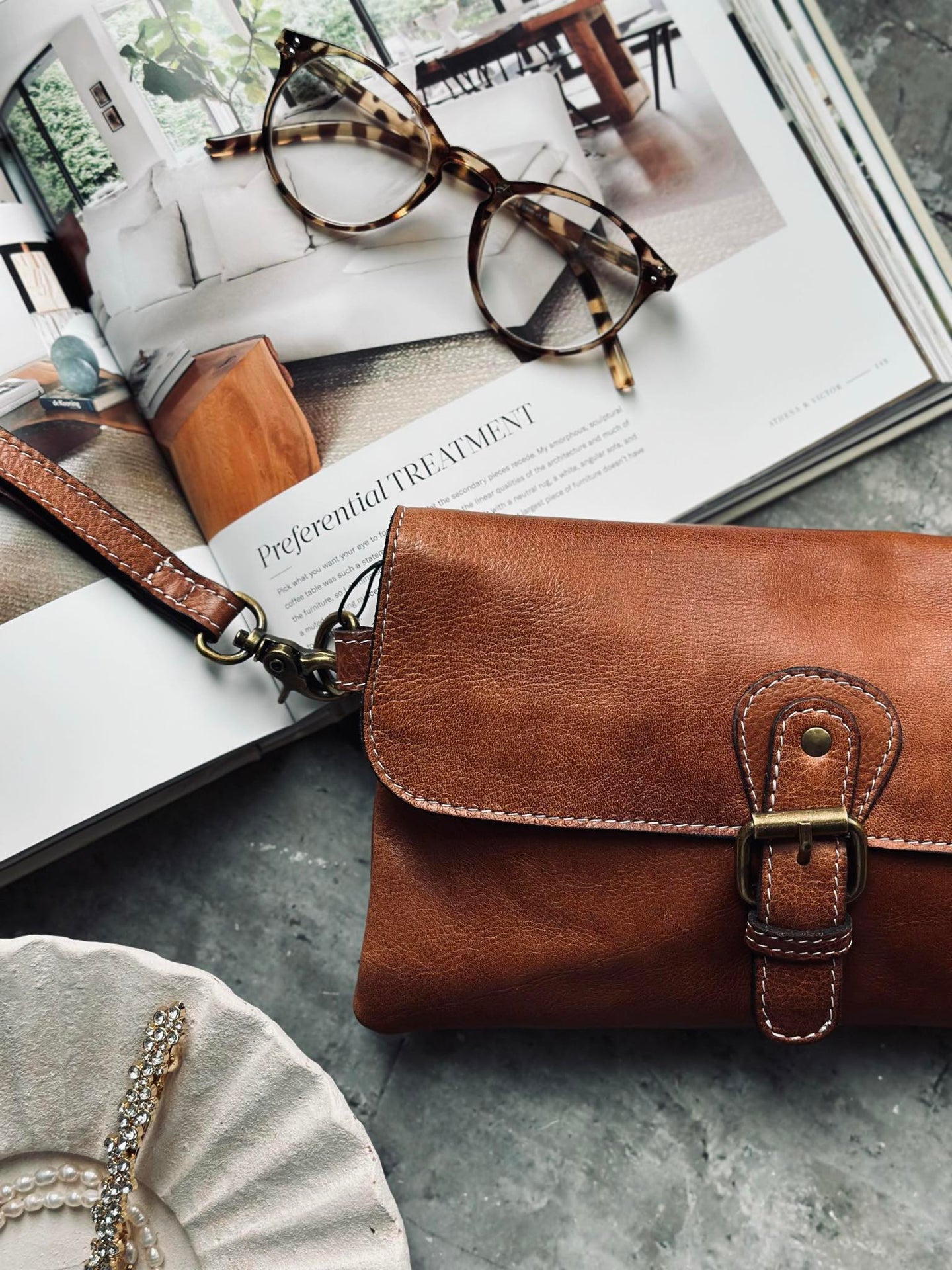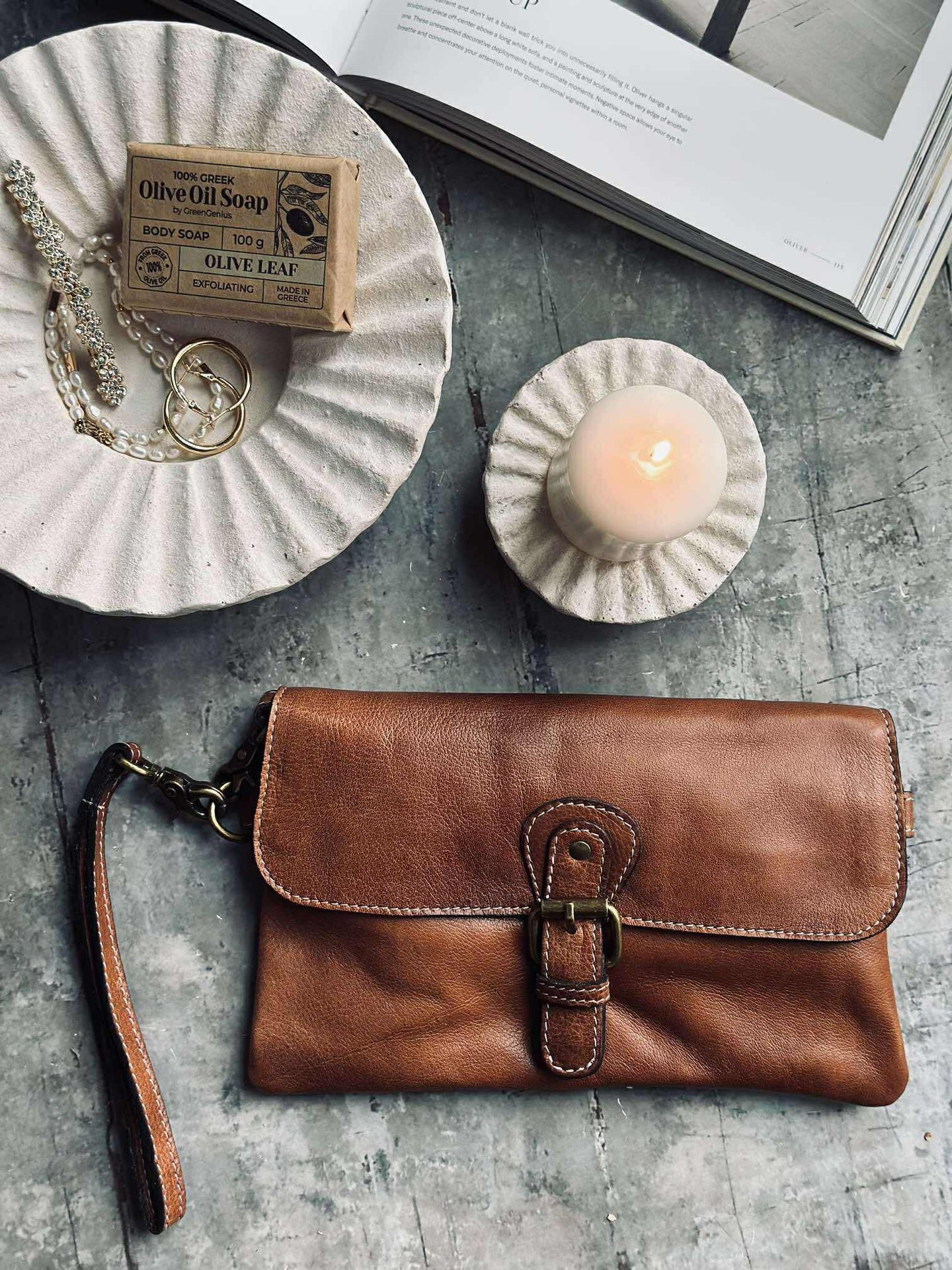 Organisera dina vardagsnödvändigheter på ett smidigt sätt med 'Clutch Jodi - Valnöt'. Slipp leta efter dina saker och ha allt nära till hands när du är på språng. Upplev en enklare och mer organiserad vardag med denna praktiska kuvertväska i läder.
