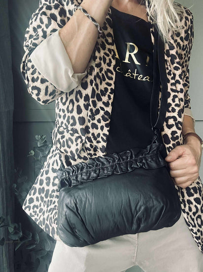 Denna axelväska är tillverkad av 100 % lammskinn, vilket ger en mjuk och smidig känsla. Materialet anpassar sig elegant efter dina rörelser och erbjuder en naturlig hållbarhet som står emot tidens tand. Lammskinnets andningsförmåga gör väskan bekväm att bära under längre perioder, samtidigt som det tillför en touch av diskret lyx till din vardag.