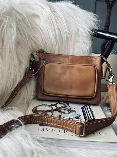 Upplev den perfekta kombinationen av stil och funktion med Clutch Mille cognac. Låt denna eleganta handväska i skinn förenkla din vardag och ge dig en sofistikerad look för speciella tillfällen. Ge dig själv friheten att bära dina nödvändigheter med stil!