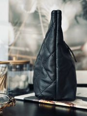- Kviltad framsida och ficka med dragkedja på baksidan