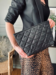 Den kviltade clutchen är tillverkad av mjukt, högkvalitativt läder, vilket ger en lyxig och hållbar känsla. Lädret bidrar till att väskan behåller formen över tid och motstår slitage, vilket gör den till en pålitlig följeslagare för alla tillfällen. Dess mjuka textur erbjuder en bekväm känsla när du bär den och lägger till en touch av sofistikering till din outfit.