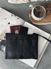 Denna kuvertväska är tillverkad av äkta buffelläder, vilket ger den en naturlig styrka och hållbarhet. Buffelläderets robusta egenskaper säkerställer att väskan behåller sin form och kvalitet över tid, samtidigt som den utvecklar en vacker patina. Materialet ger en känsla av tidlöshet och elegans, vilket gör väskan till ett pålitligt tillbehör för alla tillfällen.
