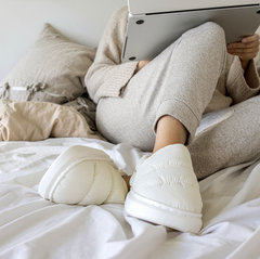 - Hjemmeskoen är tillverkad av ultramjukt material