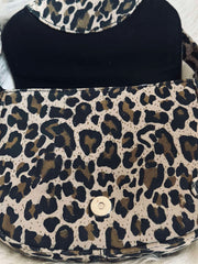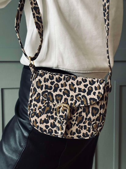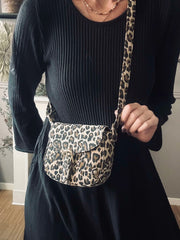- Korsbodyväskan har en klapp med magnetknapp för stängning