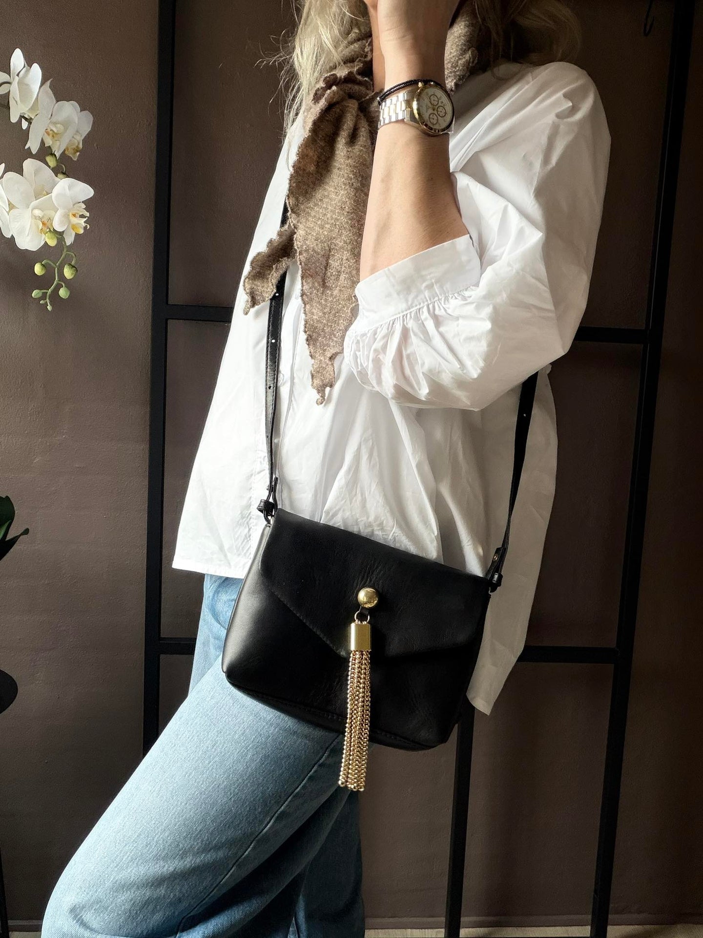 Axelremsväskan, tillverkad av 100 % lammskinn, erbjuder en mjuk och följsam känsla som endast naturliga material kan ge. Lammskinnets hållbara egenskaper garanterar en långvarig användning samtidigt som det åldras vackert över tid. Detta material är också lätt och bekvämt att bära, vilket gör det till ett praktiskt val för daglig användning. Dessutom ger lammskinnets naturliga glans en diskret och sofistikerad look.