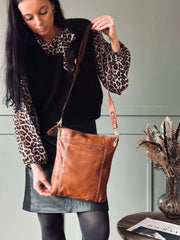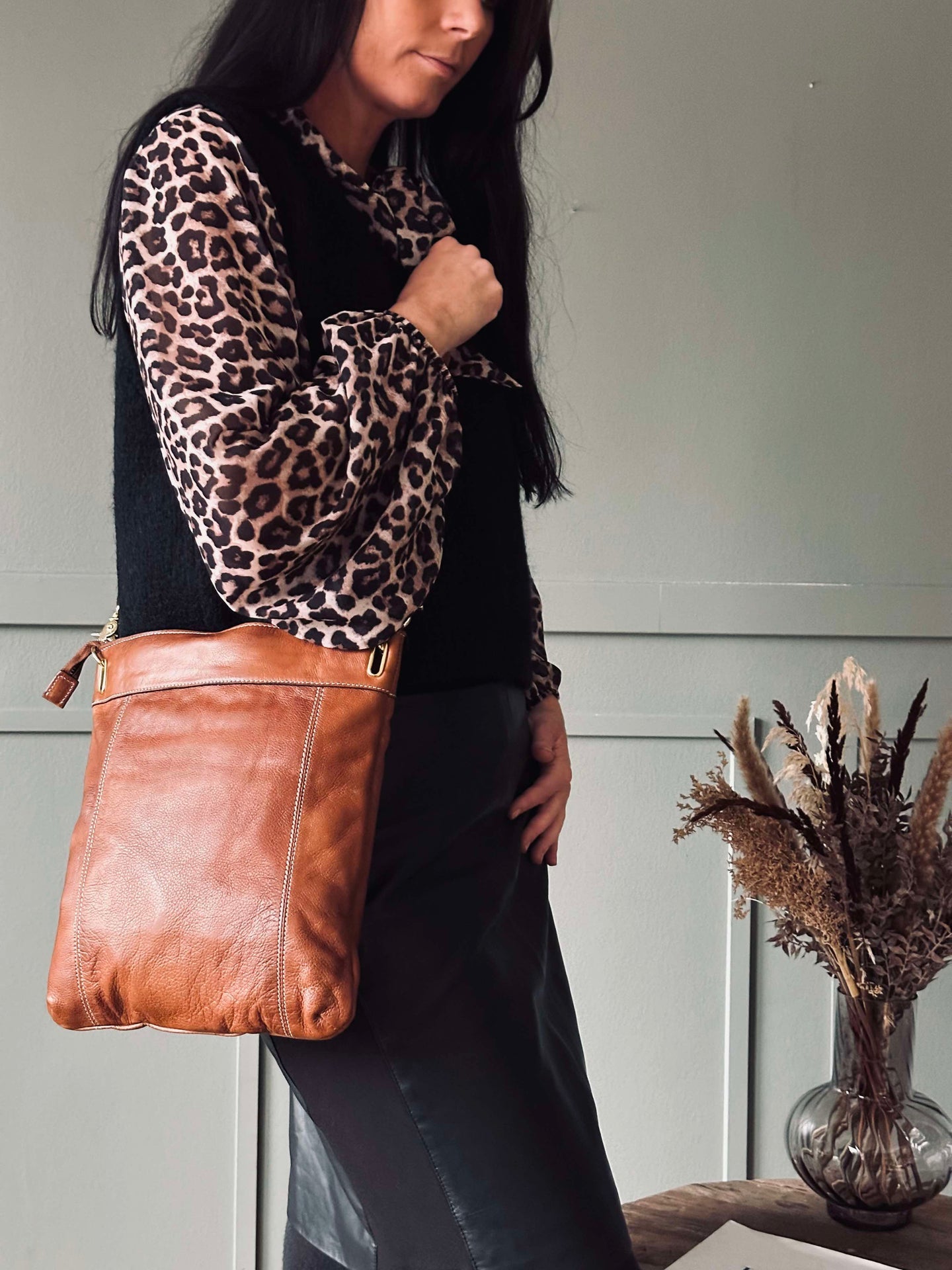 Tillverkad i urban läder, erbjuder denna korsväska en särpräglad kombination av naturligt målat oxläder och bevarat åremönster. Detta material ger väskan en naturlig patina som utvecklas med tiden, vilket gör den både hållbar och personlig. Åremönstret framhäver lädrets naturliga skönhet och ger varje väska en distinkt karaktär. Denna egenskap gör väskan till ett stilfullt och funktionellt val för vardagen.