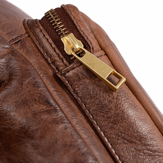 Väskan är gjord i läder och har en enkel, enfärgad design i brunt som ger ett lugnt och tidlöst uttryck.