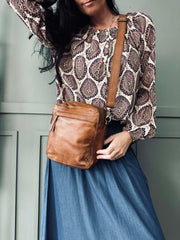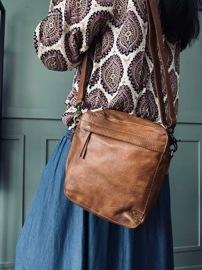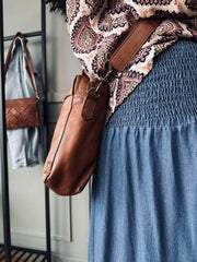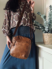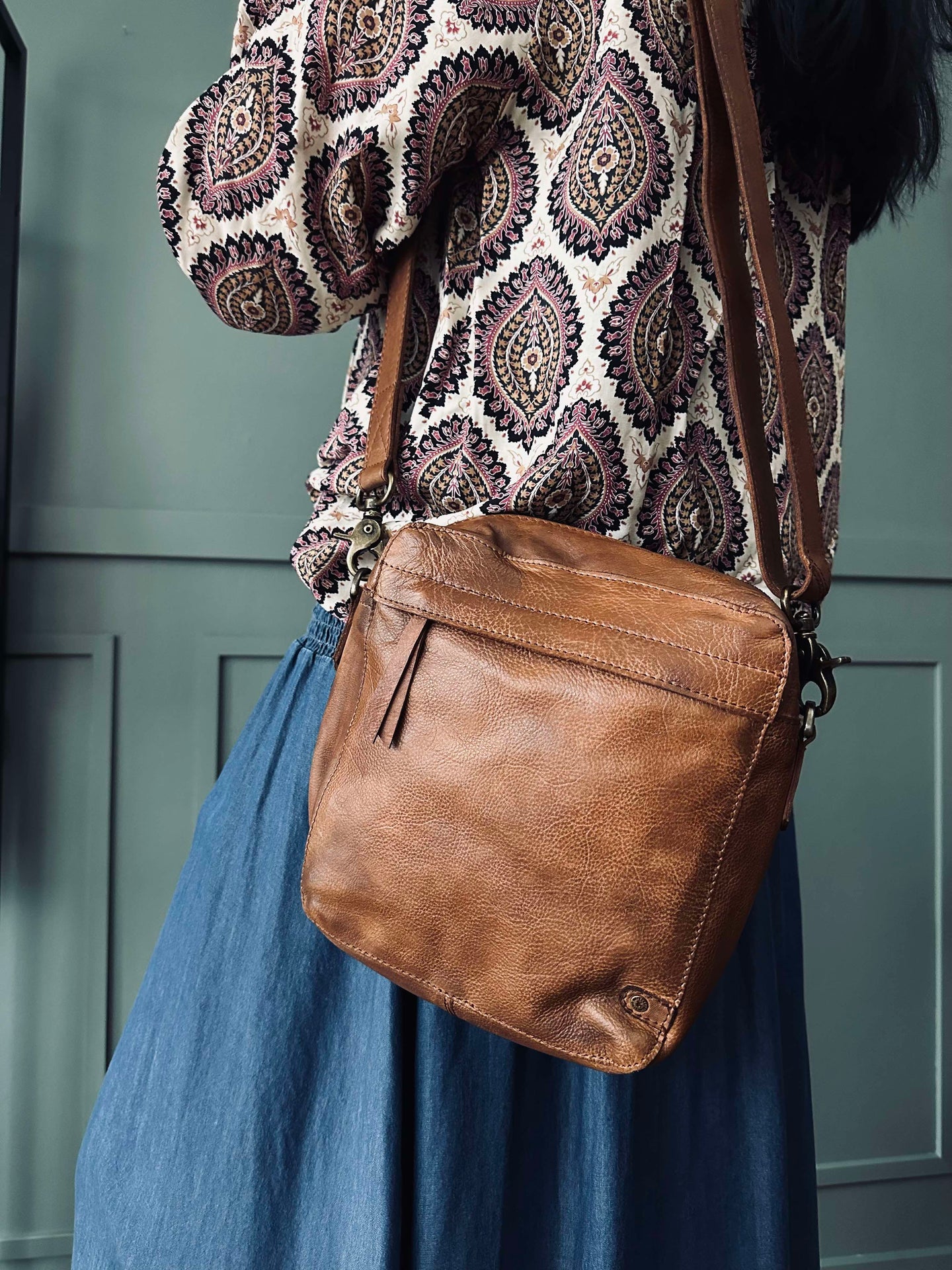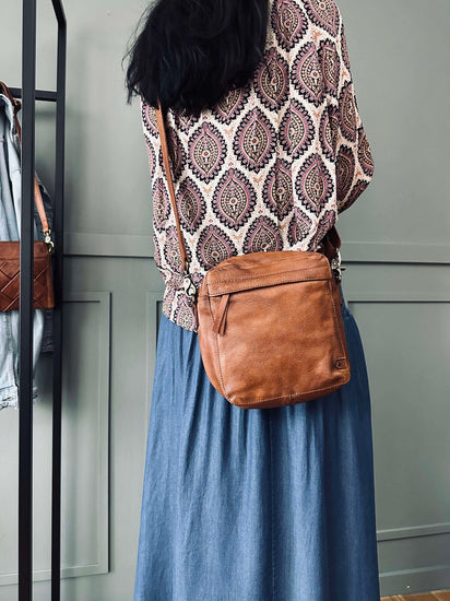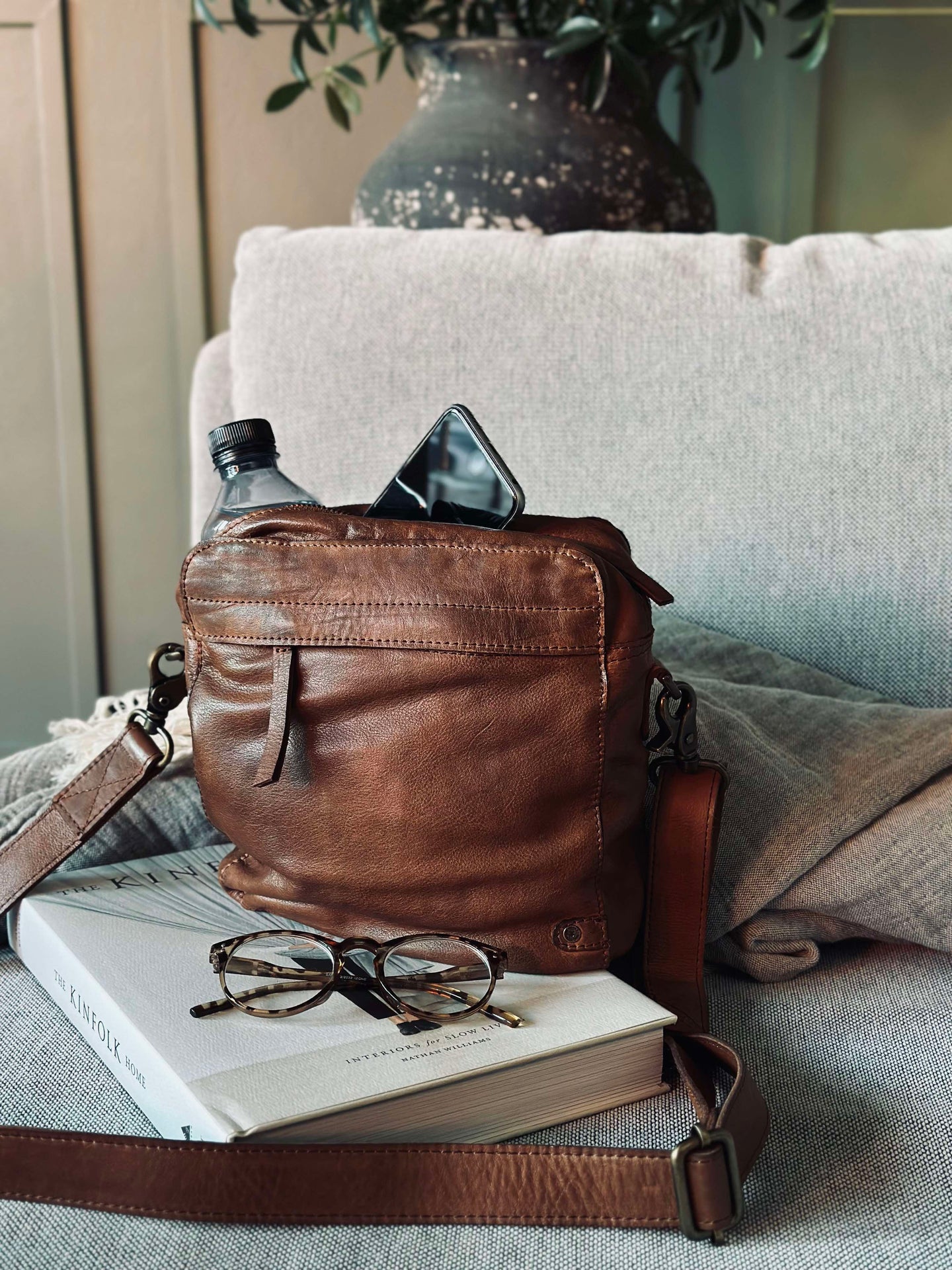 Trött på att leta efter småsaker i väskan? Crossover Minna Cognac erbjuder praktiska lösningar med olika fack, så att du enkelt kan organisera dina vardagliga nödvändigheter som nycklar och telefon. Utmärkt för den som vill ha ordning och reda.