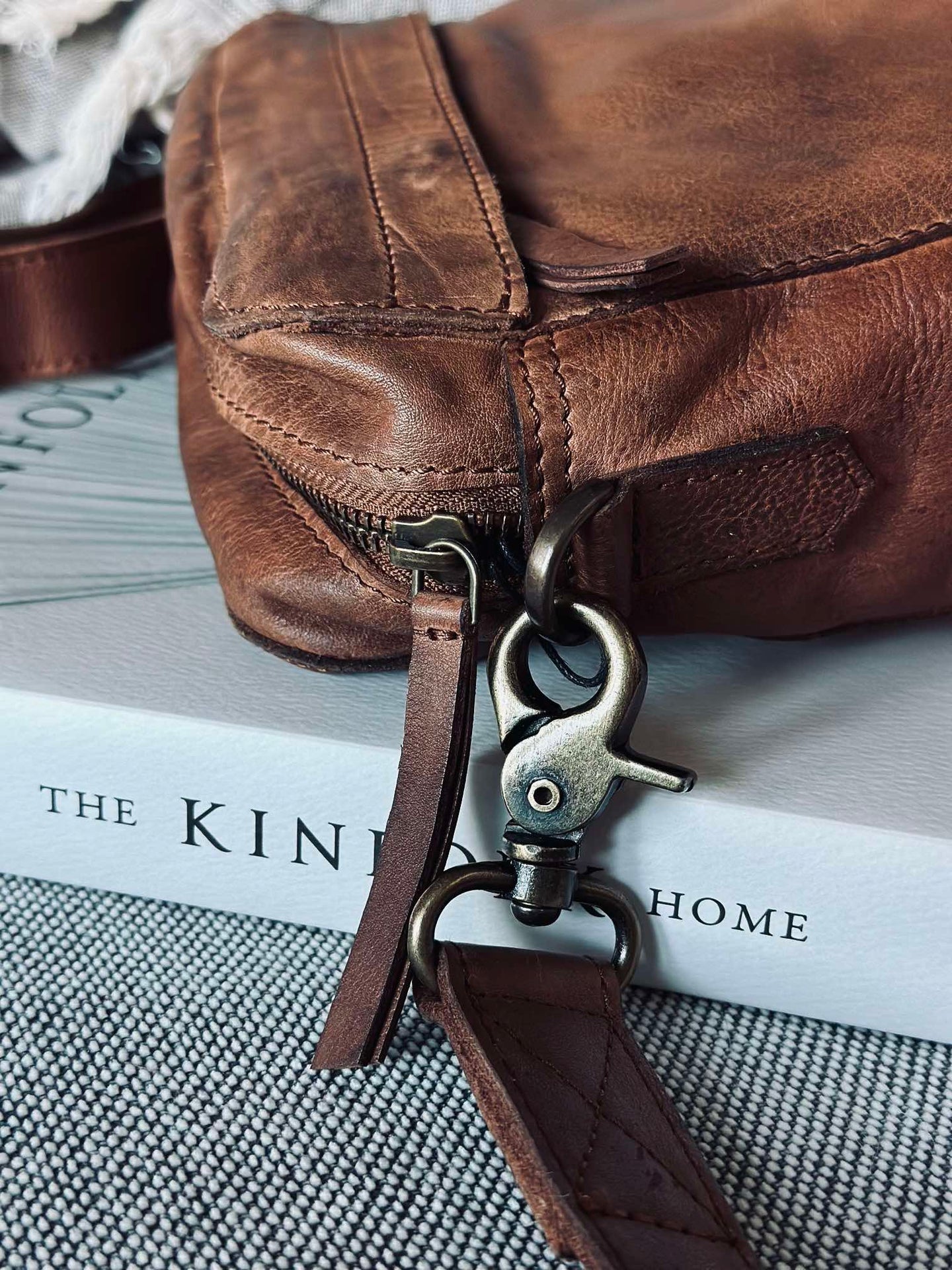 Denna crossover axelväska är tillverkad av 100 % äkta oxläder, vilket ger en naturlig och hållbar kvalitet. Lädret åldras med stil och utvecklar en karaktäristisk patina över tiden, vilket gör väskan både personlig och långvarig. Materialet är robust och motståndskraftigt mot slitage, vilket säkerställer att väskan behåller sitt utseende och funktionalitet under många år.