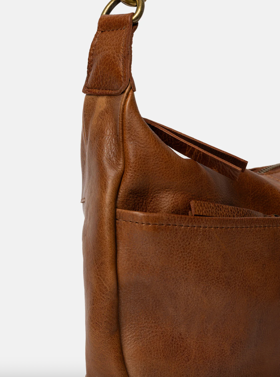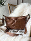 Väskan är utförd i läder och har en enfärgad design i brunt (Walnut), som understryker den minimalistiska stilen.