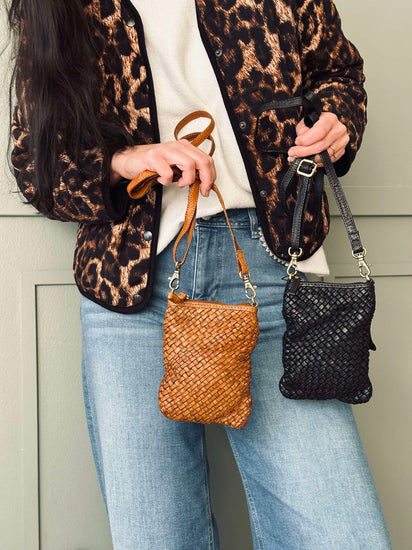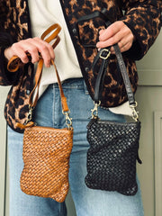 - Korsningsväskan har en flätad design