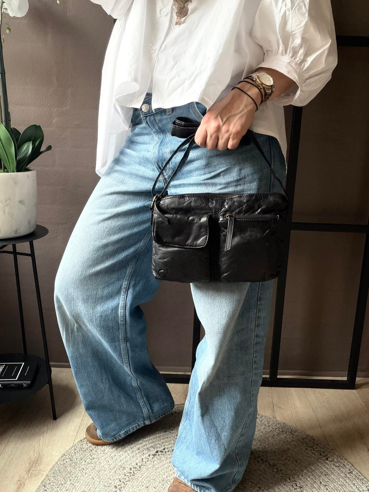 Crossover Munthe - Black är en stilfull läderväska i svart med en kompakt men rymlig form. Väskan är tillverkad i 100% koskinn och har en praktisk indelning som gör det enkelt att hålla ordning på vardagens nödvändigheter. Den justerbara remmen gör det möjligt att bära den både på axeln och som crossbody.
