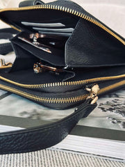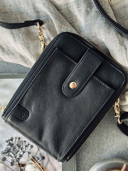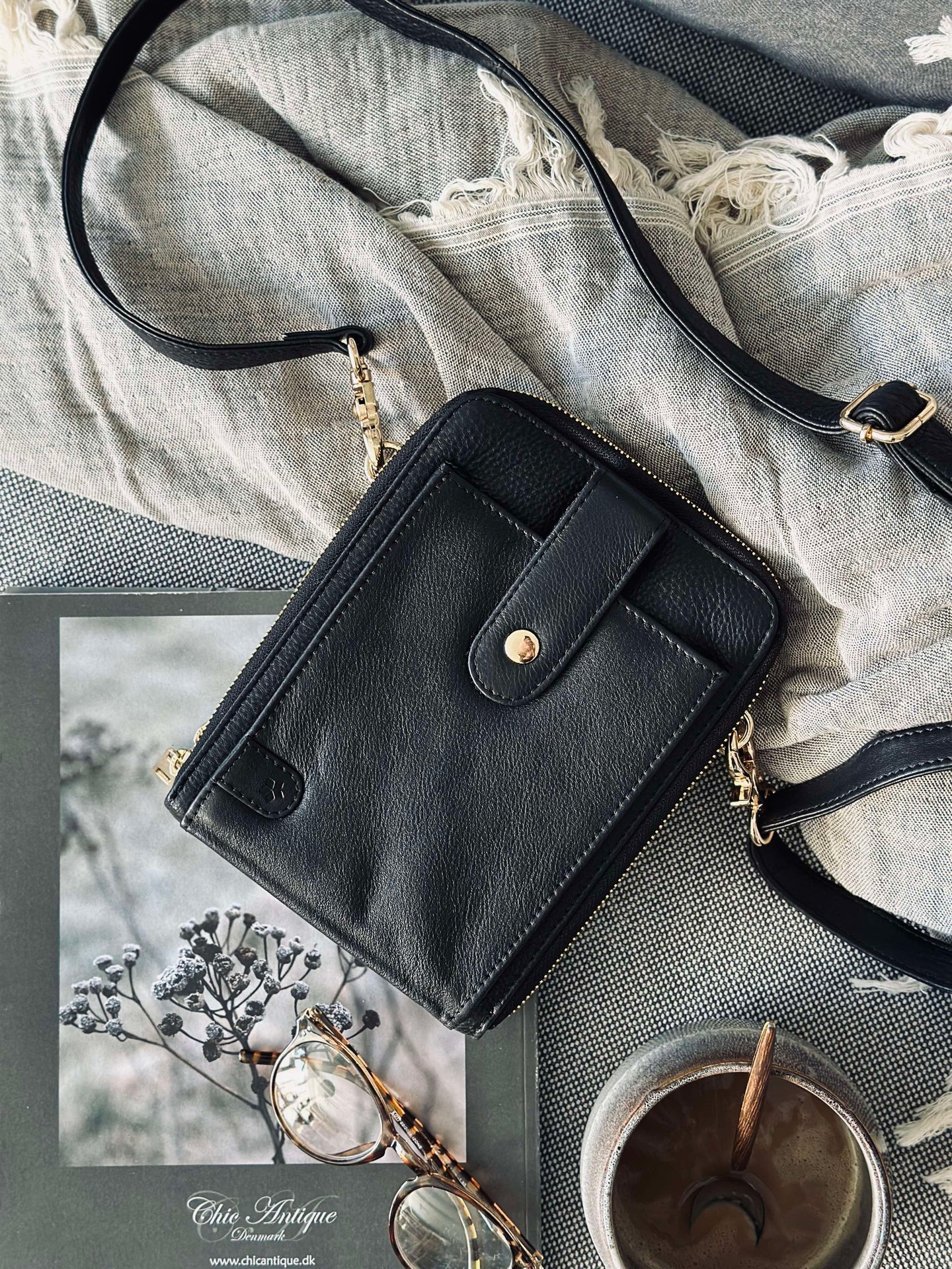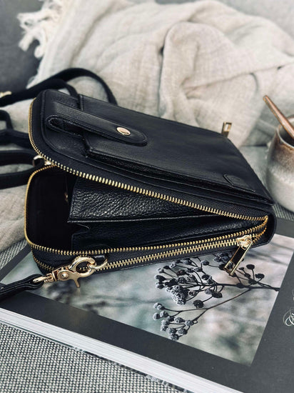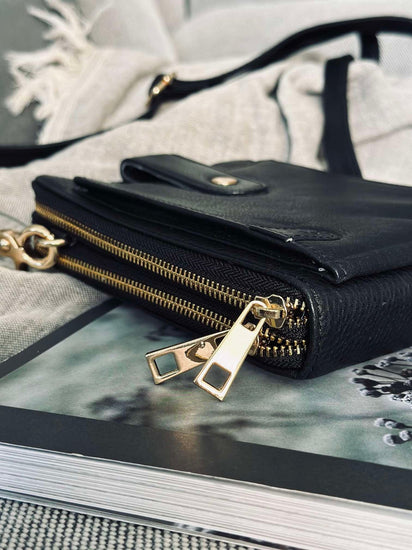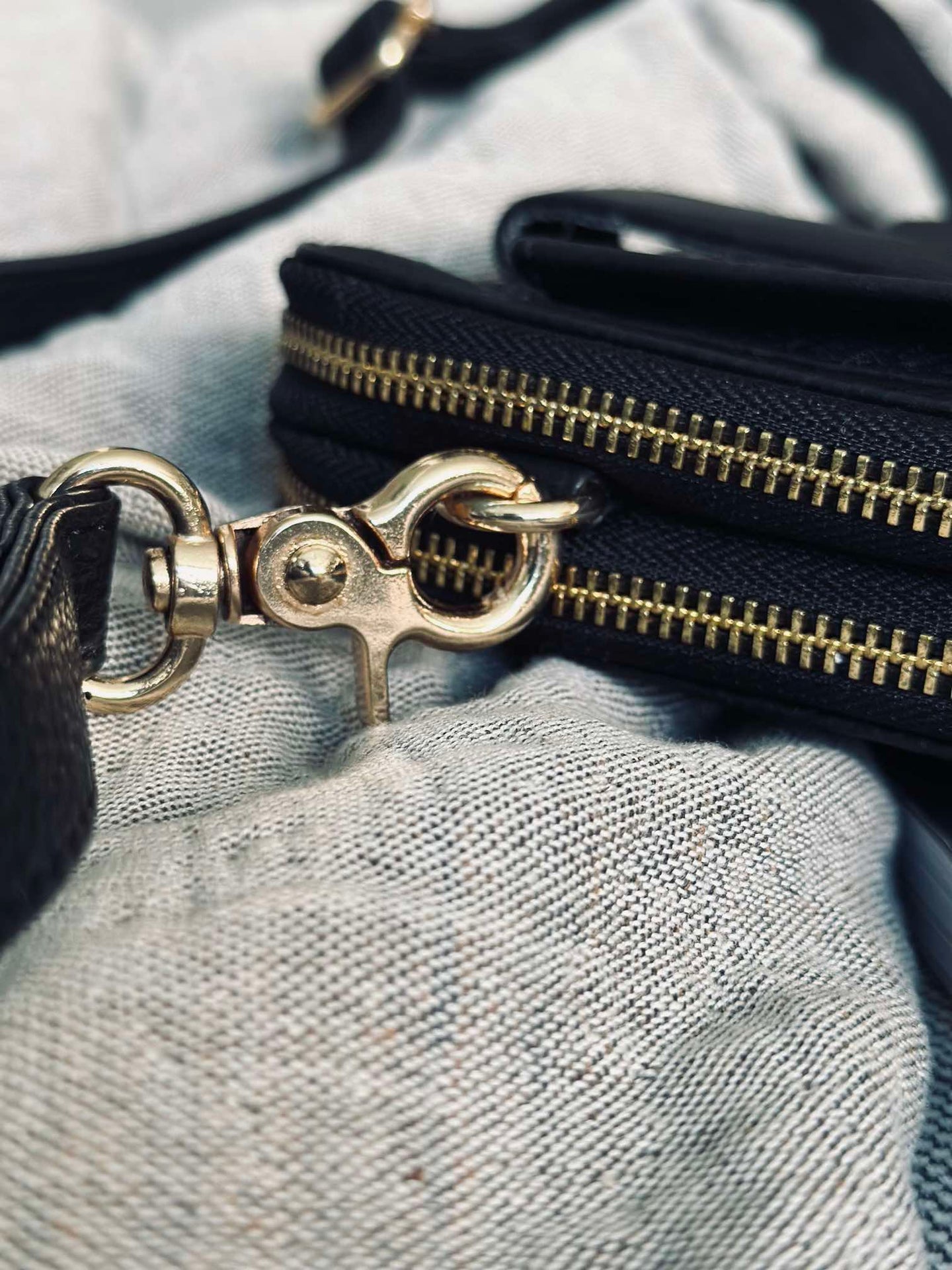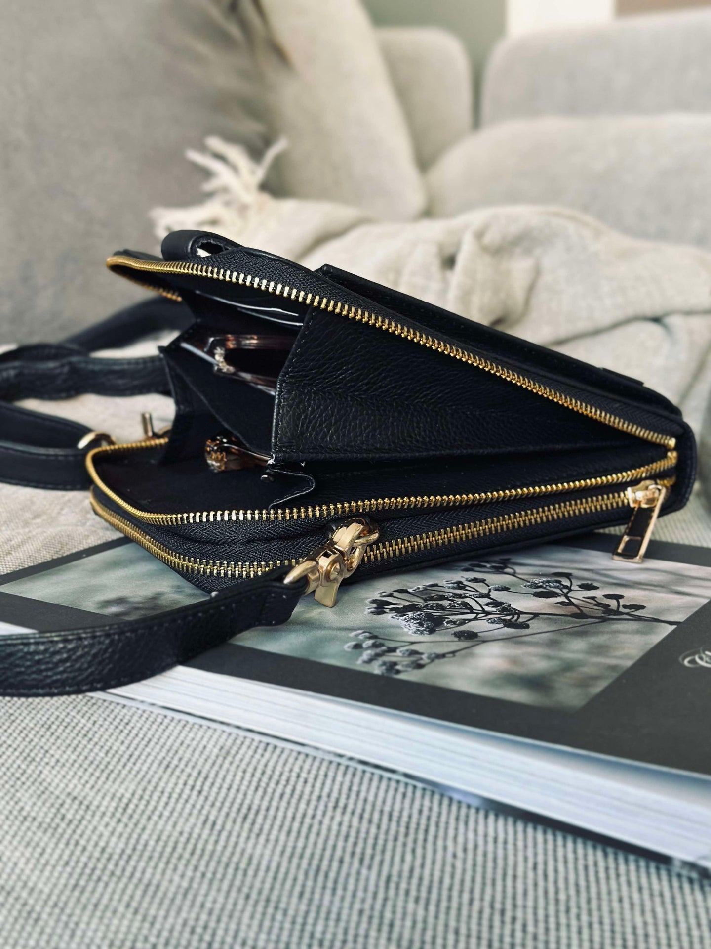 - Crossbody-väska med guldblixtlås och justerbar rem