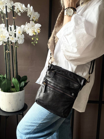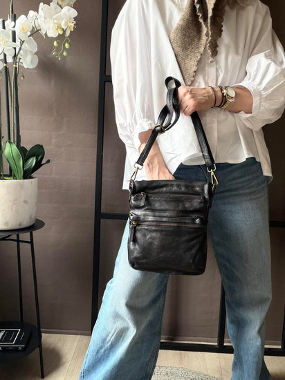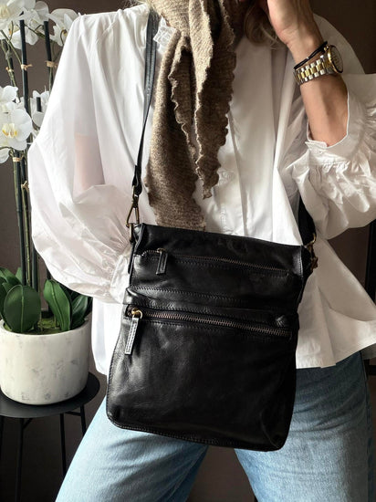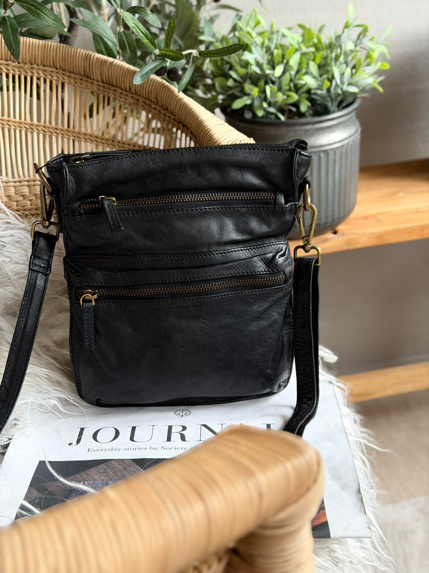 Crossover Raw Black är en stilfull crossbodyväska i läder, skapad för att göra vardagen mer överskådlig. Det rymliga huvudfacket ger plats för dina viktigaste saker, medan flera blixtlåsfack hjälper dig att hålla ordning. Den svarta färgen ger ett lugnt, tidlöst uttryck som passar både för arbete och vardag.