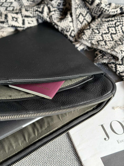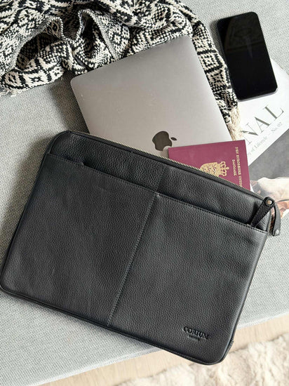 Transportera din bärbara dator stilrent och säkert med Datorfodral svart kalvskinn - LYX. Denna fodral erbjuder inte bara skydd utan också en framstående look, matchande din professionalism och smak för kvalitet. En investering värd varje krona.