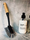Diskborsten är en robust och effektiv köksredskap med ett skaft av bambu. Den ingår i en serie av köksredskap som inkluderar en bruseskraber, alla med matchande design.