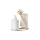 - Setet innehåller fyra delar: en praktisk hållare, en sæbedispenser, en diskborste och en disktrasa