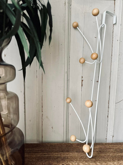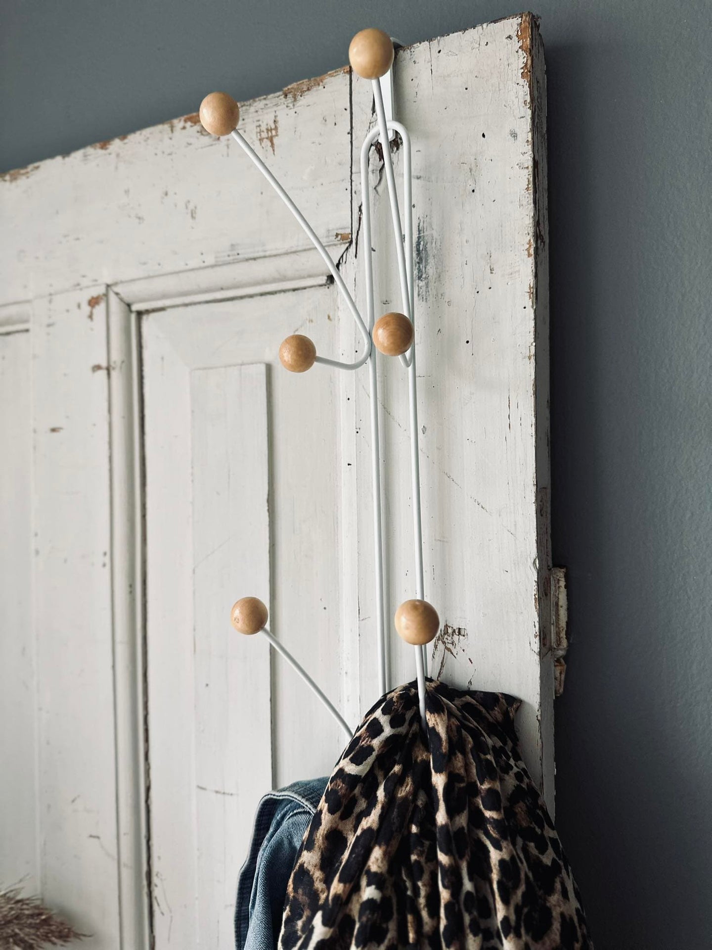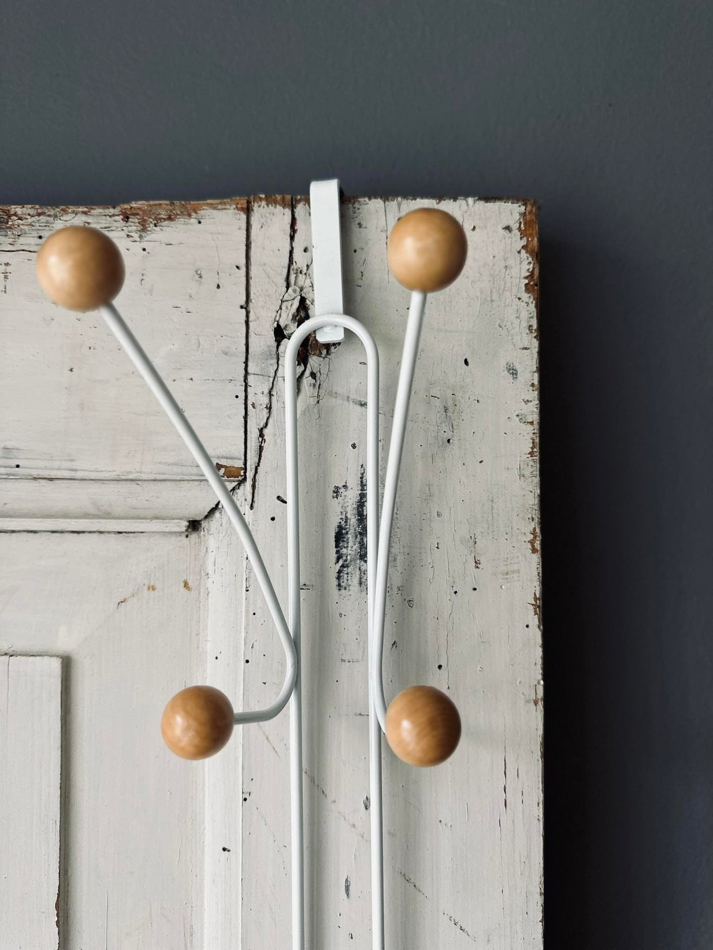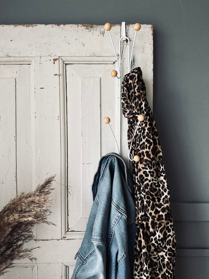 Vår dörrkrok är tillverkad av vit metall, vilket bidrar till en modern och stilren estetik. Metallens hållbarhet garanterar också en lång livslängd, vilket gör den till ett praktiskt och kostnadseffektivt tillägg till din garderobsförvaring. Dessutom smälter den vita färgen på metallen smidigt in i olika interiörstilar, vilket ger en diskret men ändå effektiv förvaringslösning.