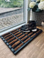 Denna dörrmatta är tillverkad i hållbart svart gummi med borste, vilket gör den både robust och effektiv för att avlägsna smuts och damm från skor. Gummimaterialet är tåligt mot väder och vind, vilket säkerställer att mattan behåller sin form och funktion över tid. Borsten hjälper till att skrapa bort envis smuts, vilket bidrar till att hålla ditt hem rent och fräscht.