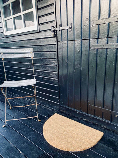 Den halvmåneformade designen på denna dörrmatta ger dig en större yta att torka av skorna på. De grova kokosfibrerna har utmärkt skrapeförmåga och håller effektivt smutsen borta från ditt hem. Dessutom är kokosfibrer ett naturligt material som är både slitstarkt och hållbart, vilket gör denna dörrmatta till ett både ekonomiskt och miljövänligt val.