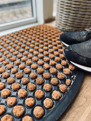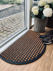 Vår halvmåneformade dörrmatta är tillverkad av både naturgummi och gummi, vilket ger den exceptionell hållbarhet och lång livslängd. Dess robusta konstruktion gör att den kan stå emot dagligt slitage och hålla din entré ren och välkomnande. Naturgummits egenskaper bidrar till att mattan ligger stadigt på plats, även på hala ytor, vilket minskar risken för olyckor.
