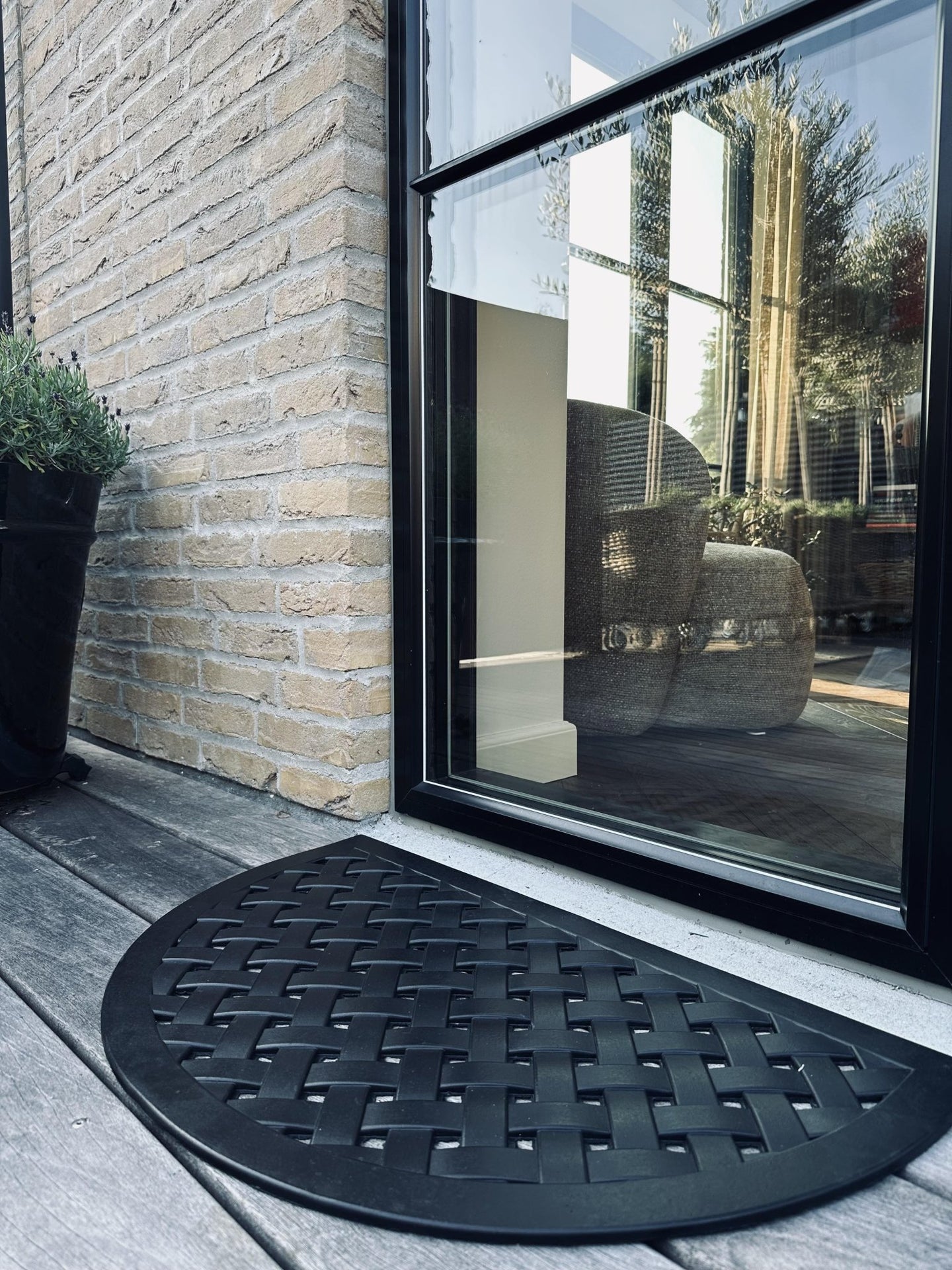 Trött på att släpa in smuts och lera i hemmet? Den svarta halvmåne-dörrmattan löser problemet med ett hållbart material som effektivt fångar upp skräp och håller din hall ren och fräsch. Enkel och praktisk.