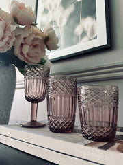 Detta vackra dricksglas i gammalrosa glas ger inte bara en elegant touch till din dukning, utan dess unika färg och design skapar en varm och inbjudande atmosfär. Dessutom är det tillverkat av högkvalitativt glas, vilket garanterar dess hållbarhet och långa livslängd. Det är perfekt för alla typer av drycker och tillfällen, vilket gör det till ett måste i varje hem.