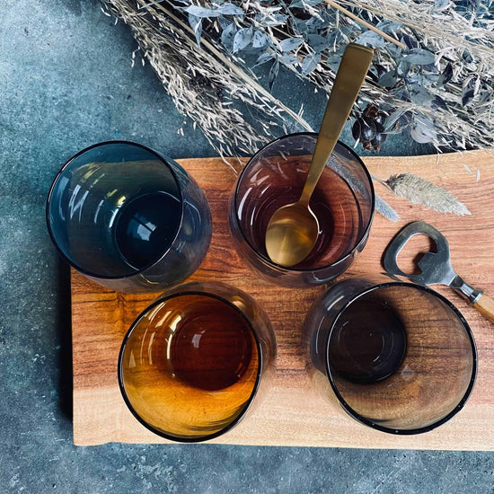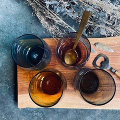 Låt dessa färgglada glas lysa upp ditt hem och ge en touch av glädje till din vardag. Förnya ditt kök eller vardagsrum med dessa unika och användbara glas och njut av en färgstarkare tillvaro varje dag! Dricksglas i vackra färger - 4 st.