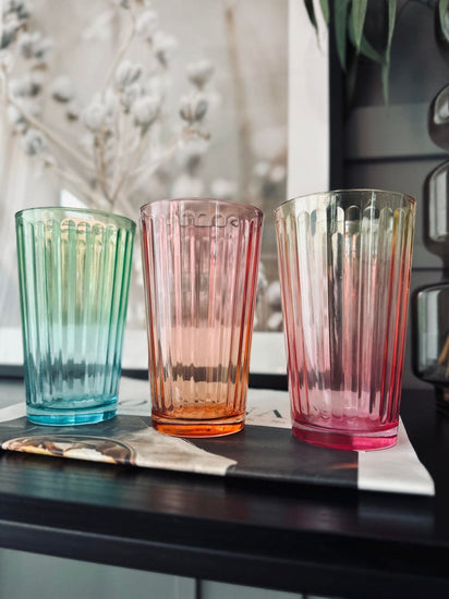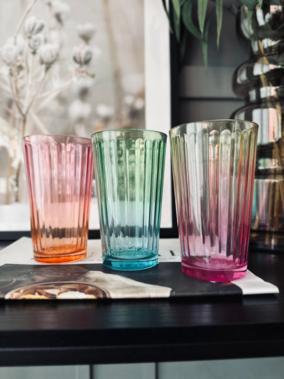 Ge ditt kök en touch av färg och stil med dessa regnbågsdricksglas. Skapa en särpräglad atmosfär vid middagsbordet och låt varje måltid bli lite roligare och mer speciell. Uppgradera din vardag med dessa vackra glas!