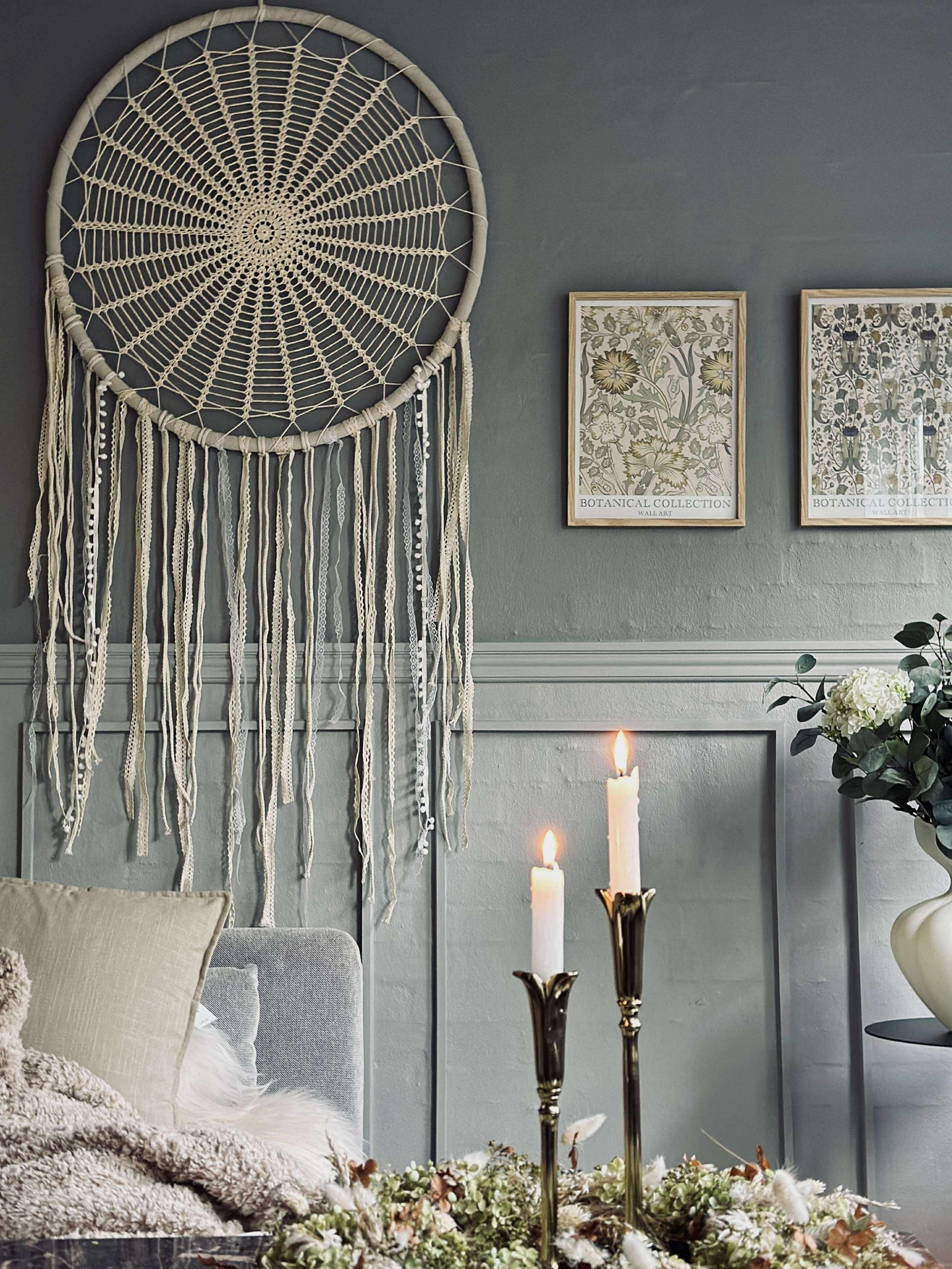 - Stor dekorativ drömfångare i naturfärger