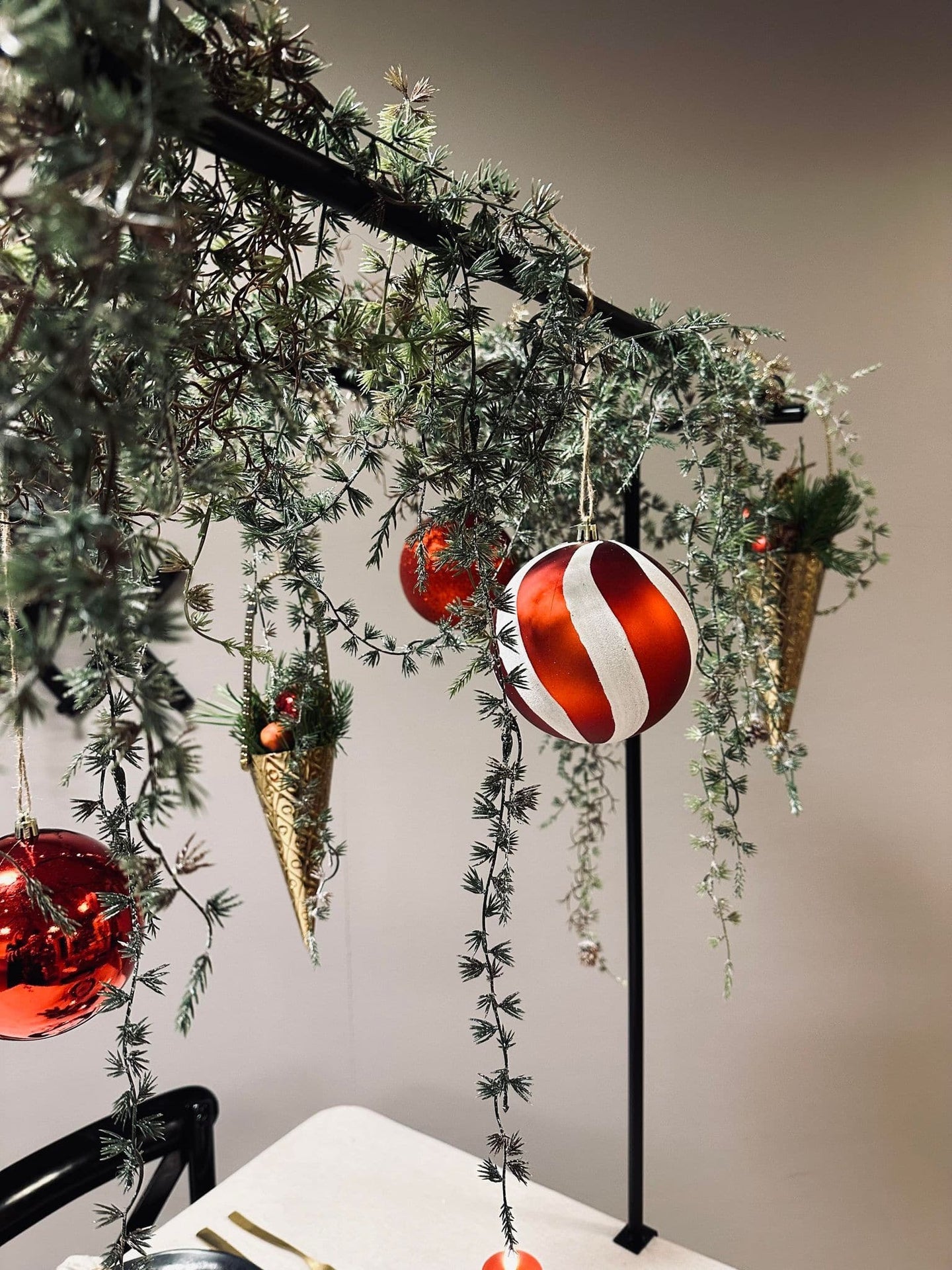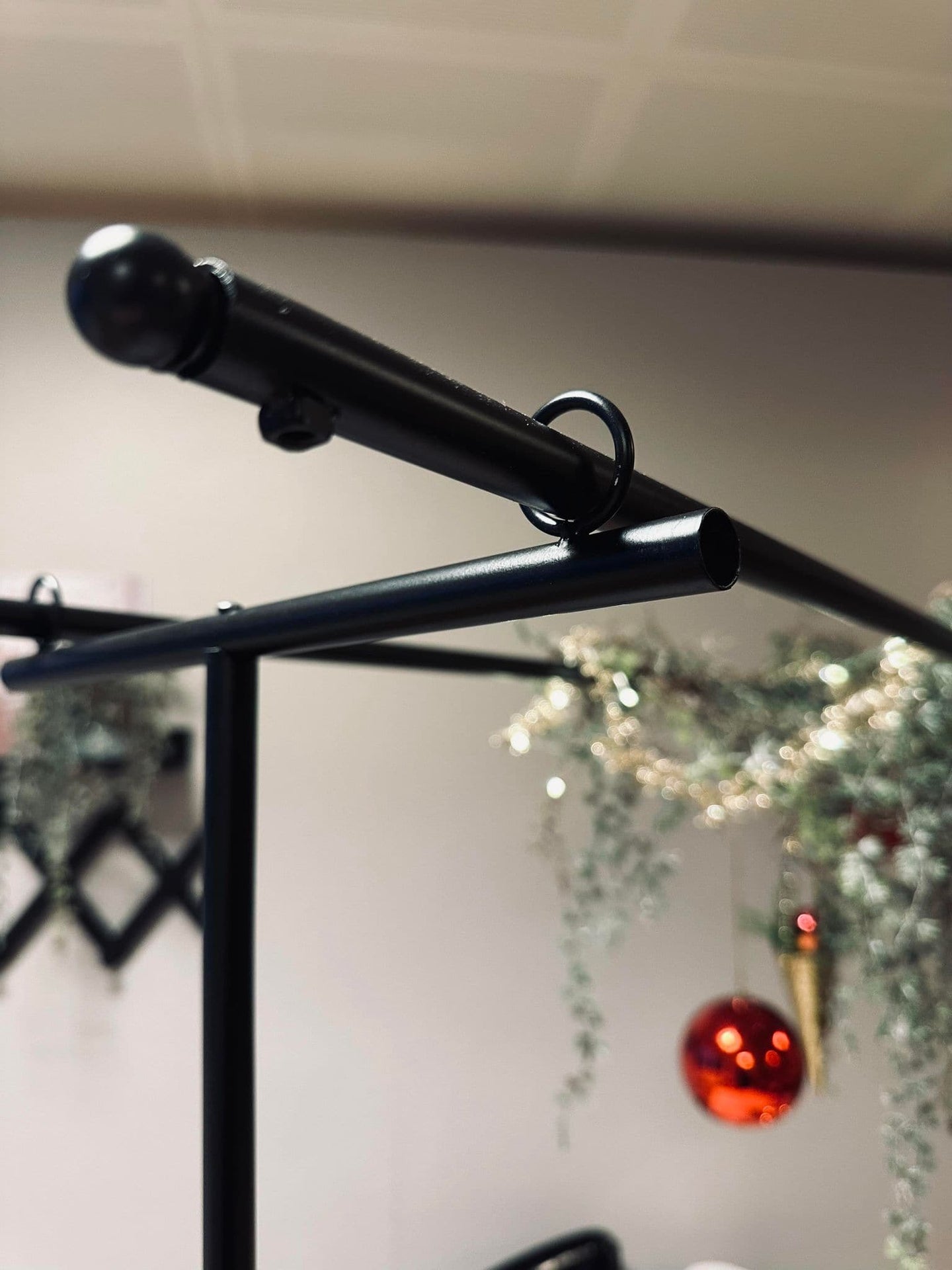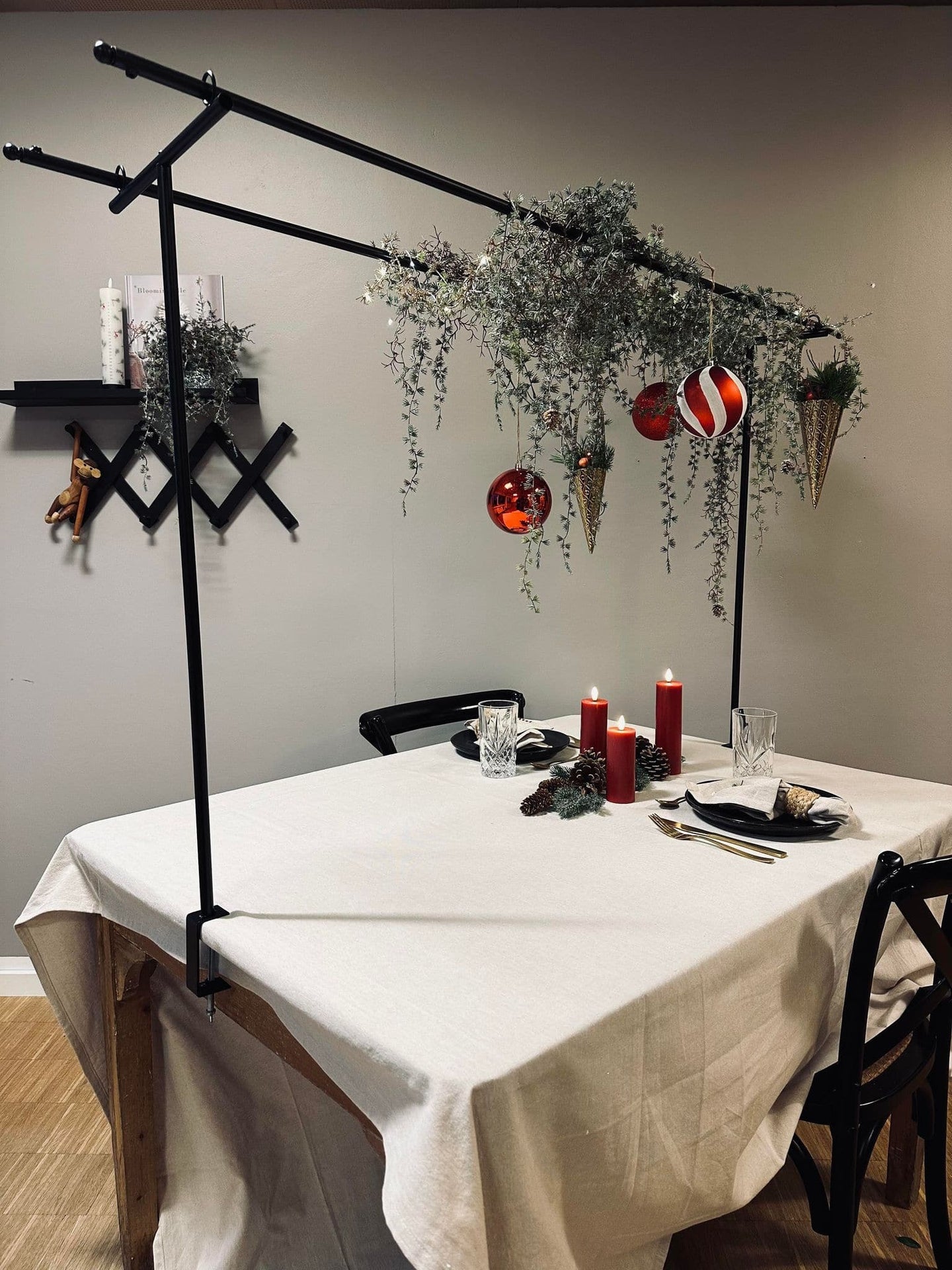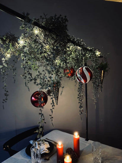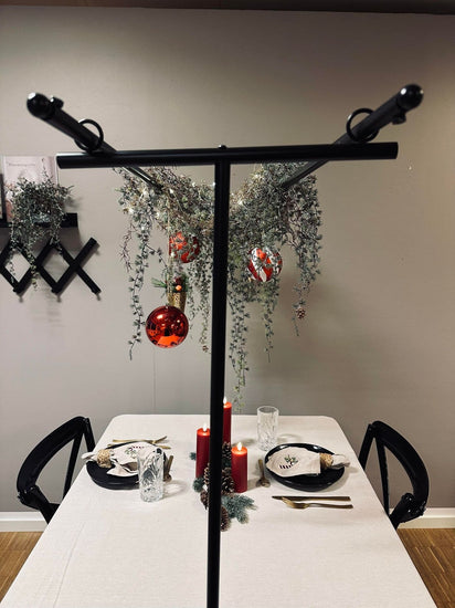 Bordsstativet är tillverkat av svart metall, vilket ger det en stilren och modern känsla. Den robusta konstruktionen säkerställer att det kan stå stadigt på alla ytor, samtidigt som den mörka färgen bidrar till att skapa en elegant atmosfär. Metallens hållbarhet gör även att stativet är långvarigt och tåligt mot slitage.
