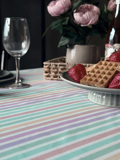Föreställ dig en middag där du kan slappna av och njuta av stunden, utan att oroa dig för spill och fläckar. Duk - Pastellrand förenar stil och funktionalitet, vilket gör varje måltid till en fröjd. Ge ditt hem den perfekta balansen av elegans och praktisk användbarhet.